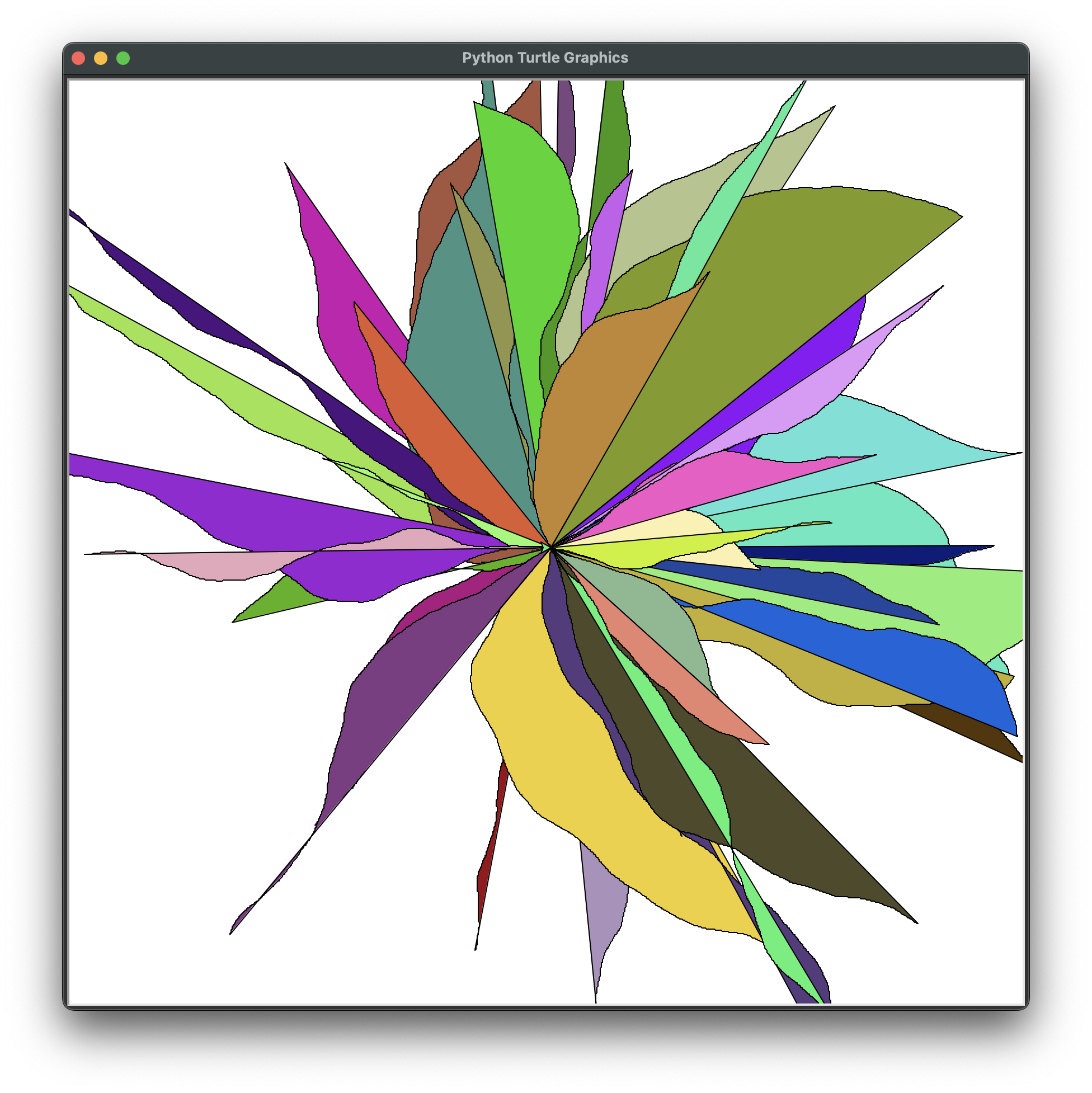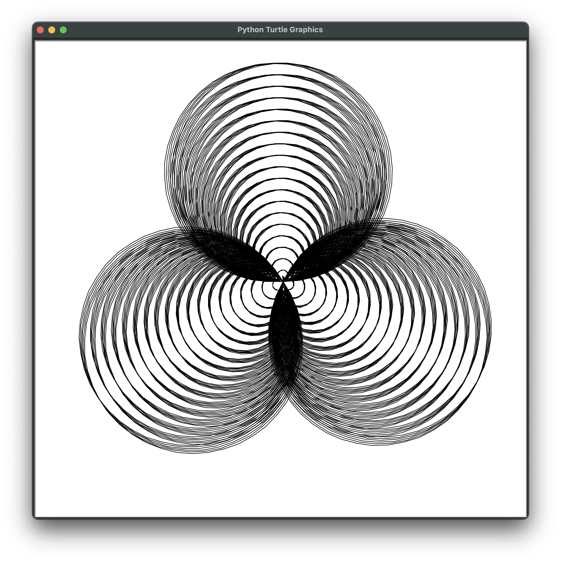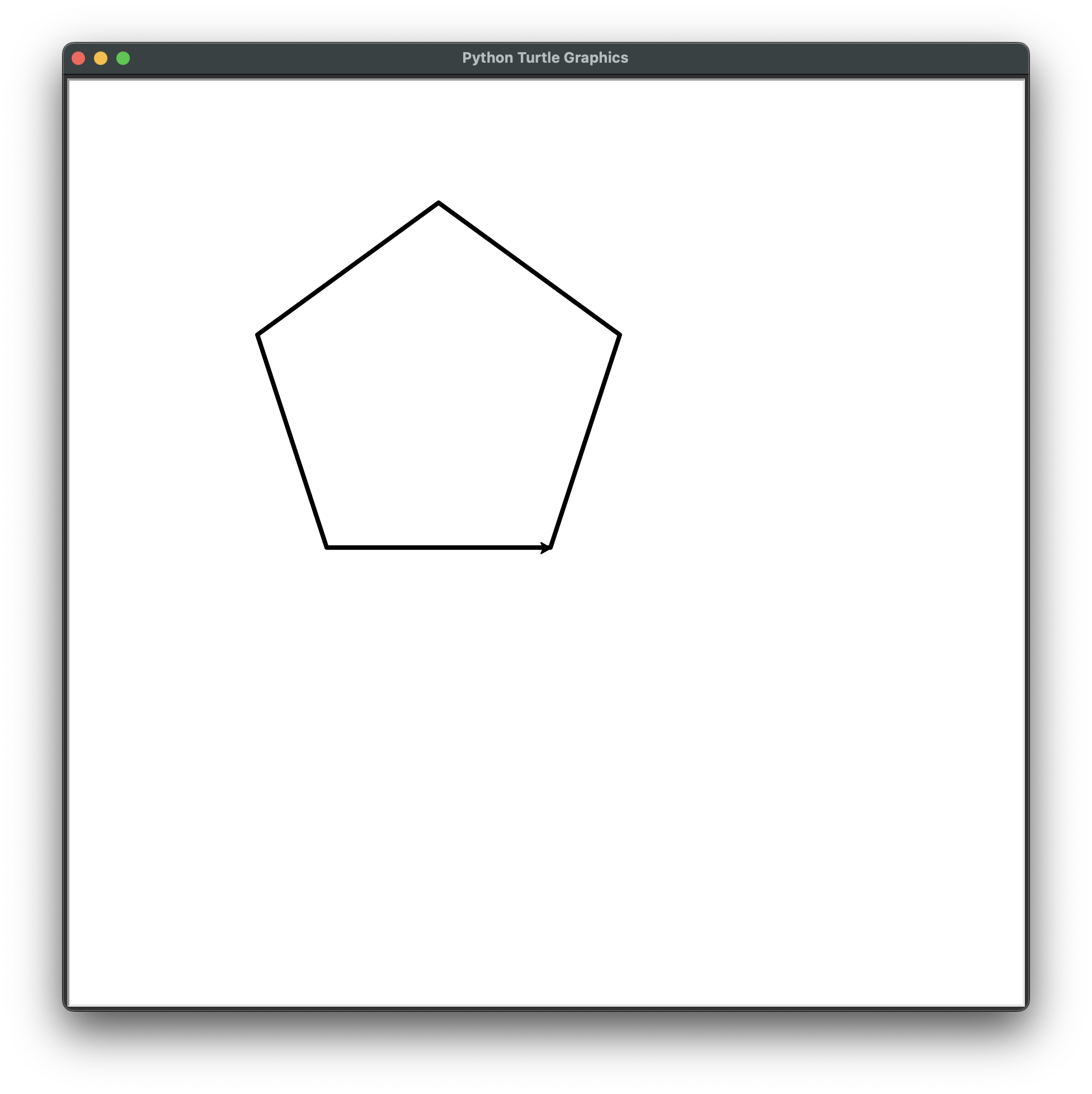 done() # Without this, the Turtle window may immediately close before you can see the picture.The done() function pauses the program until you close the Turtle window. Python programs end immediately after the last instruction runs. This can cause the Turtle window to close as soon as your drawing has finished. You should always add done() at the end of your Turtle programs so the window stays open and the user can see the drawing.