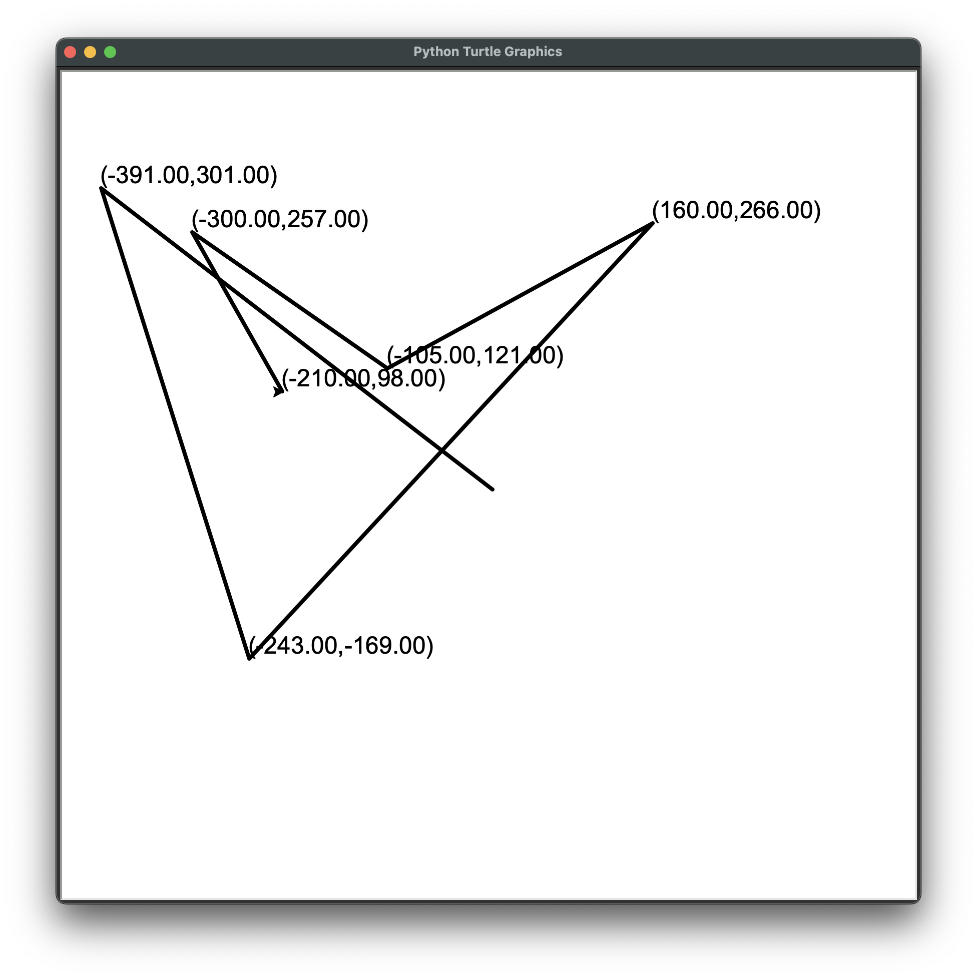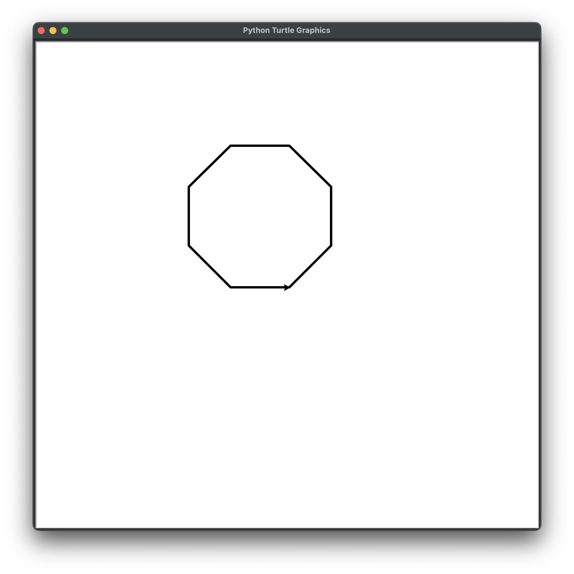 When you run this program, a new window (which we will call the Turtle window) will appear with the following drawing: