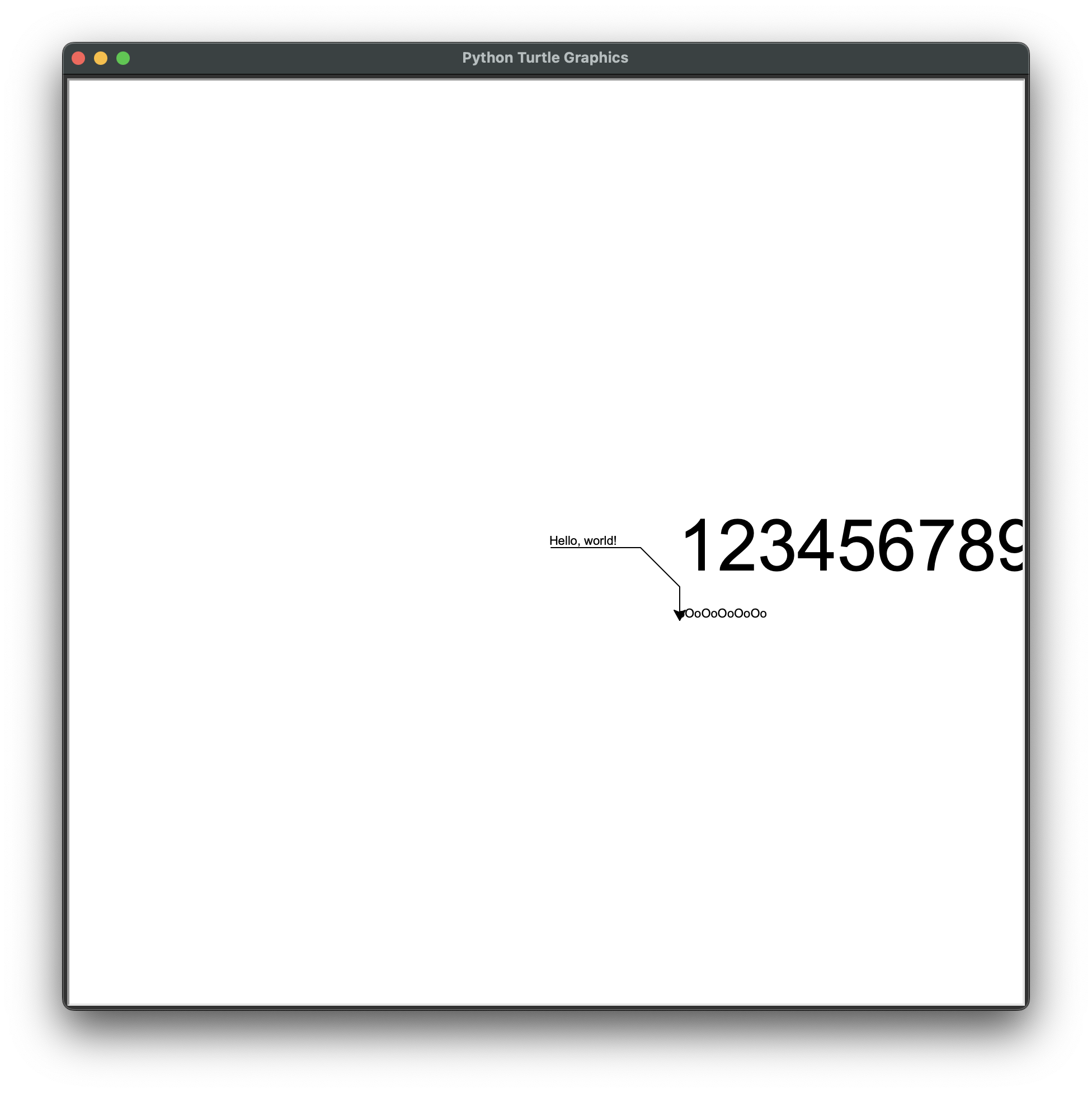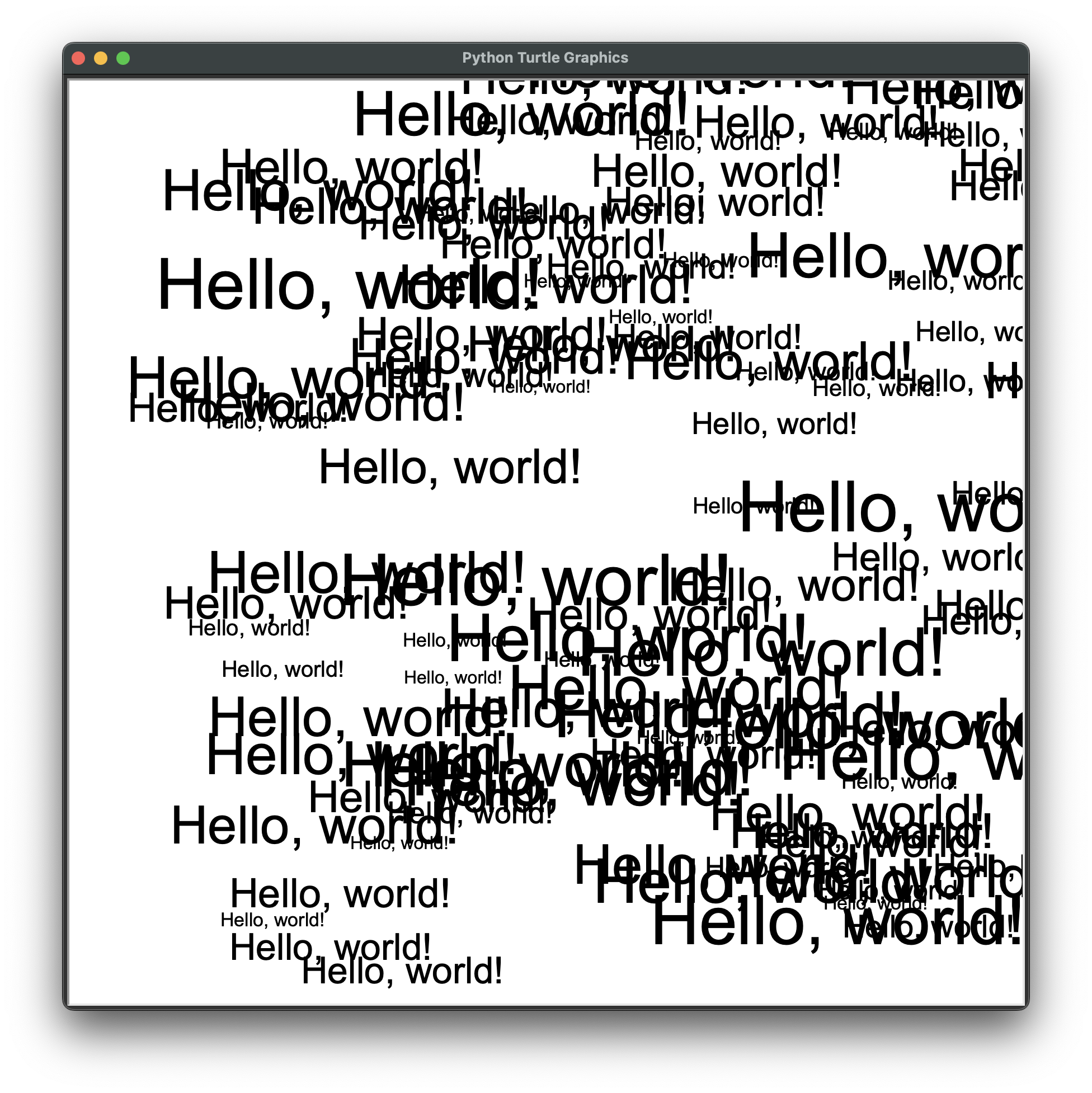 write('Hello, world!', font=('Arial', randint(12, 48), 'normal'))