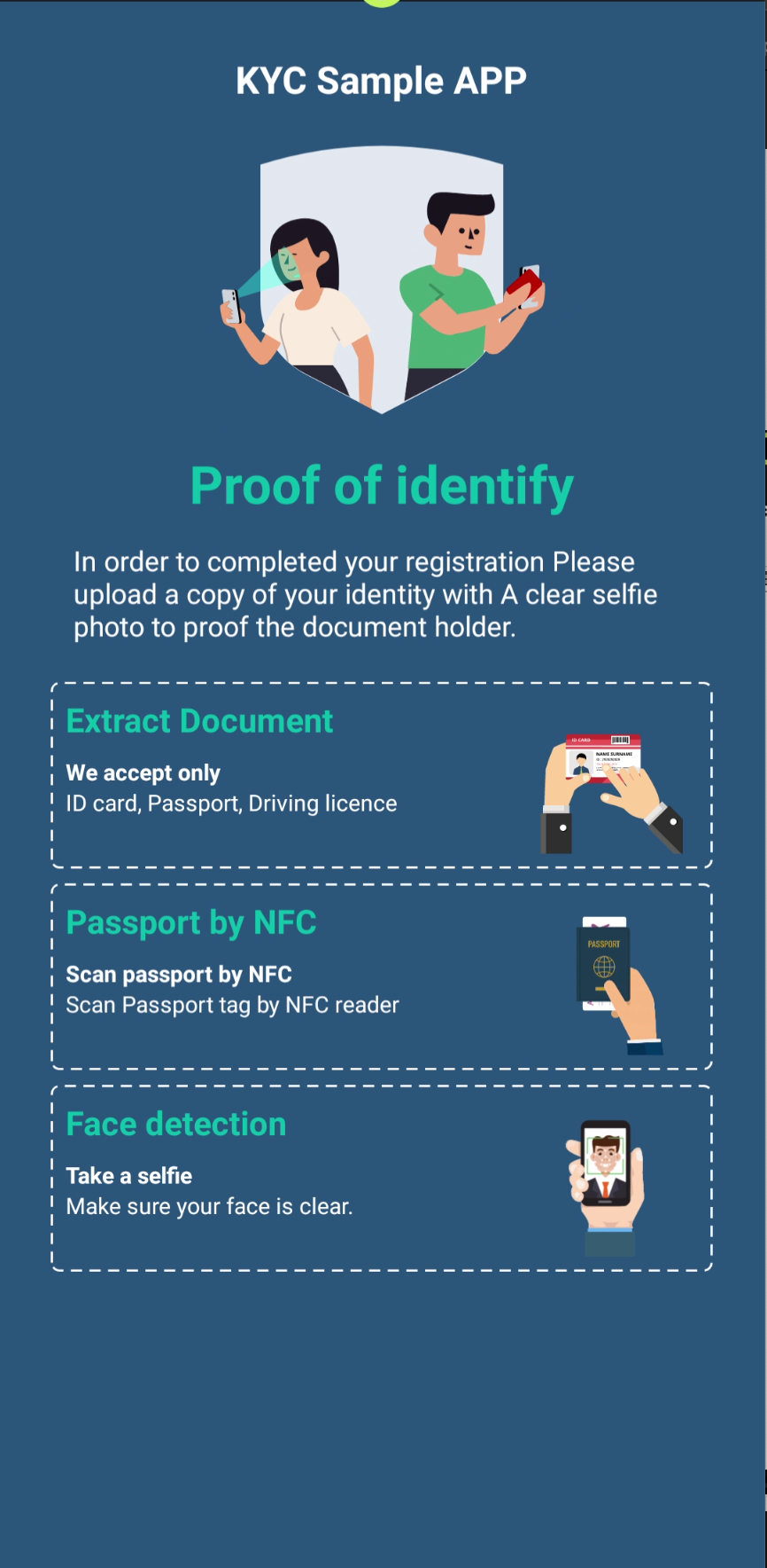 This is an SDK to determine how to Extract document details by ML kit, Detect and extract Face by camera and How to extract and decrypt Passport details by NFC tag
