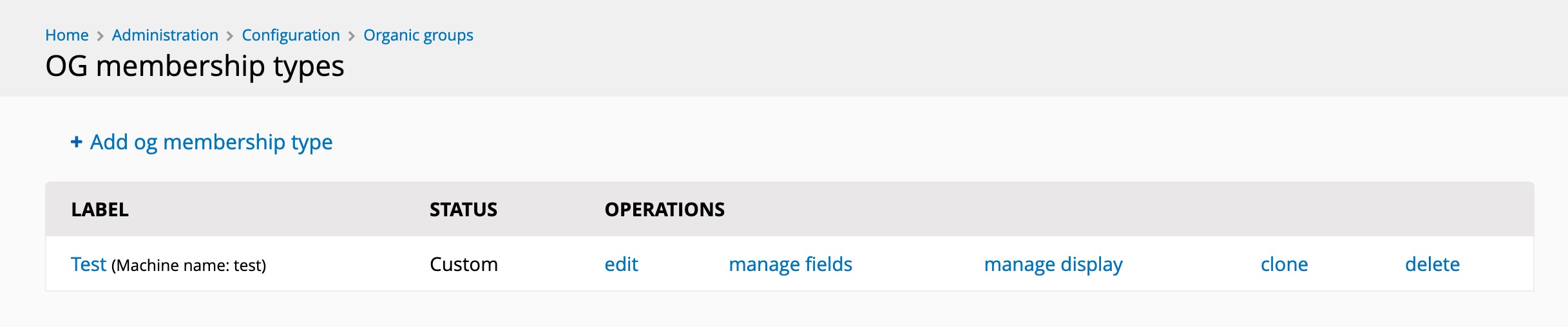 OG Membership Types screen: Operations as separate links