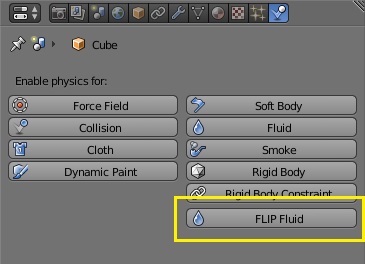 - In the Physics Properties panel, click the OpenFLIP button. This will set the selected object as a OpenFLIP simulation object.