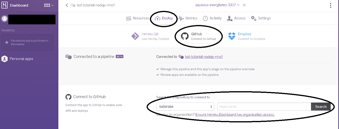 Now sign into Heroku to see all of your Heroku apps and select the one you just created before:
