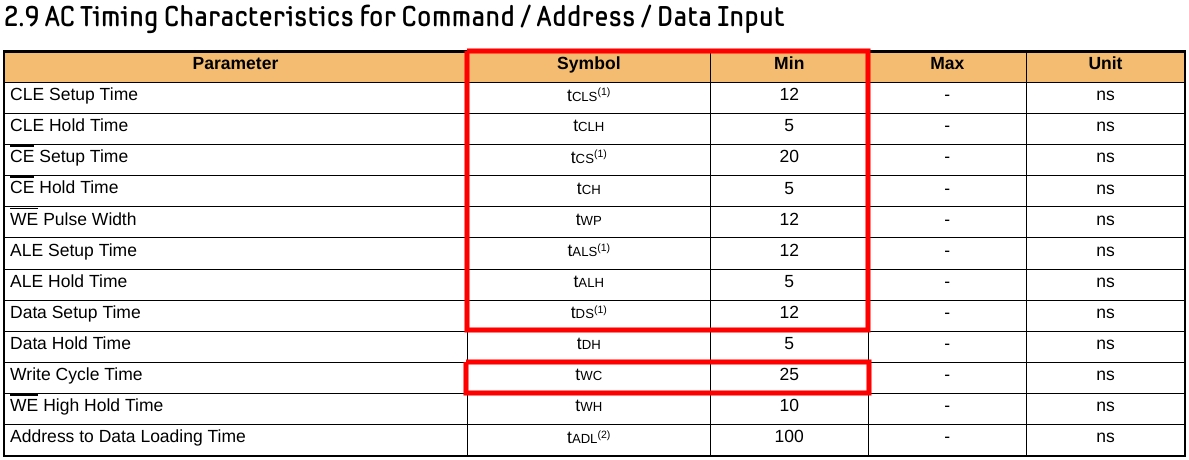 - tCLS - Command Latch Enable (CLE) setup time (ns).