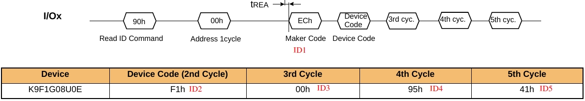 - ID1 - 1st chip ID - manufacturer (hexadecimal).