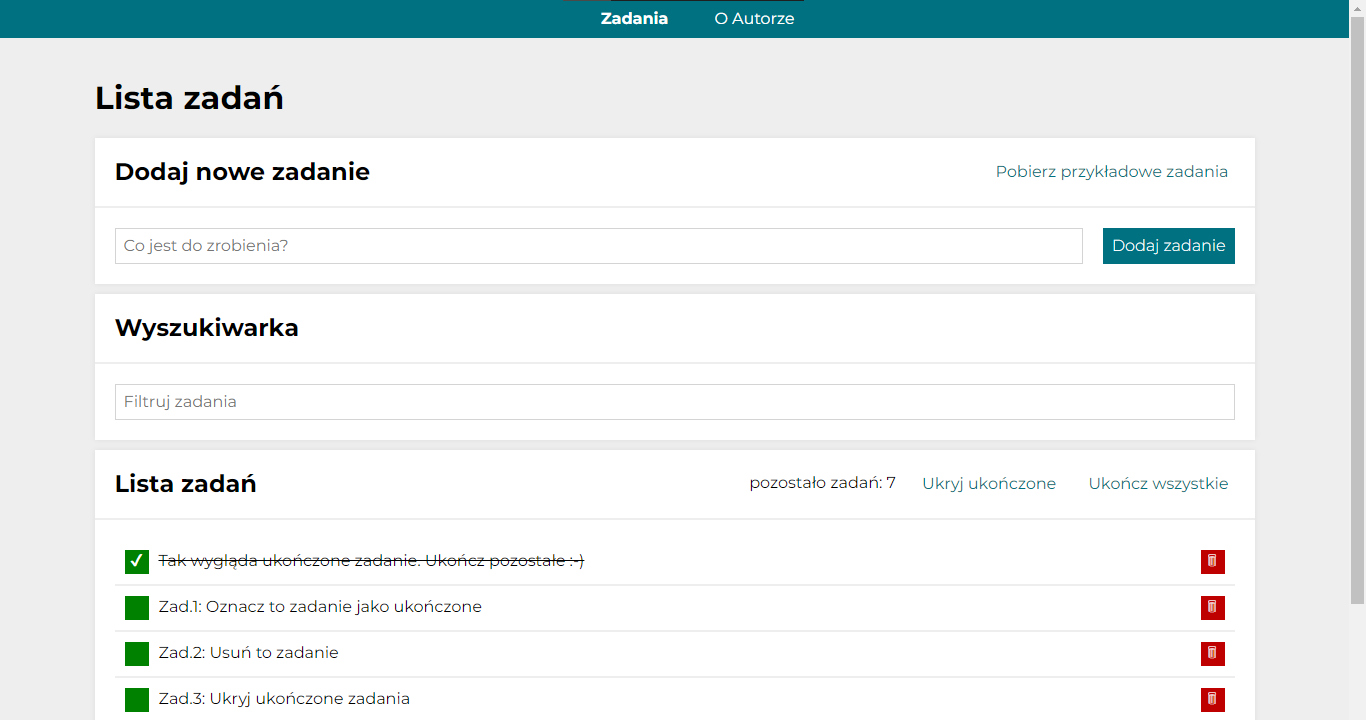 0.2.0: I've added a counter of tasks yet to be done, moved task logic to custom hook. Taski list is now stored client-side.