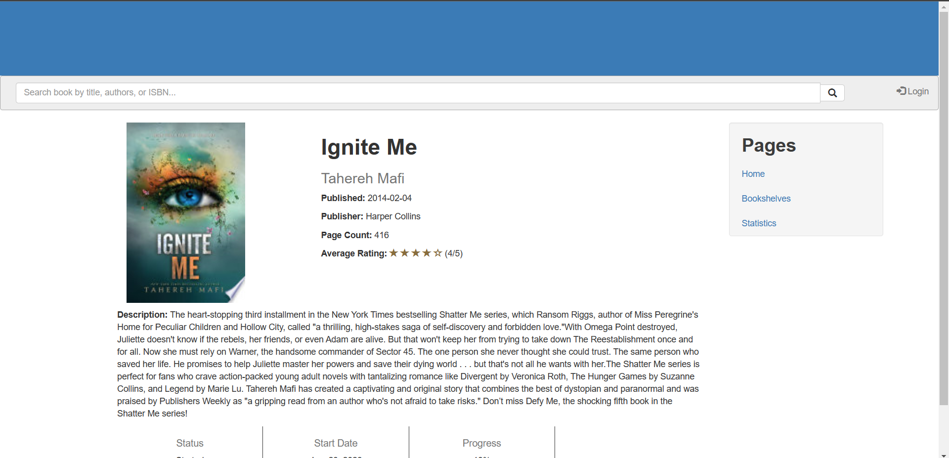 - Create a statistics page where users can see what their reading is like
