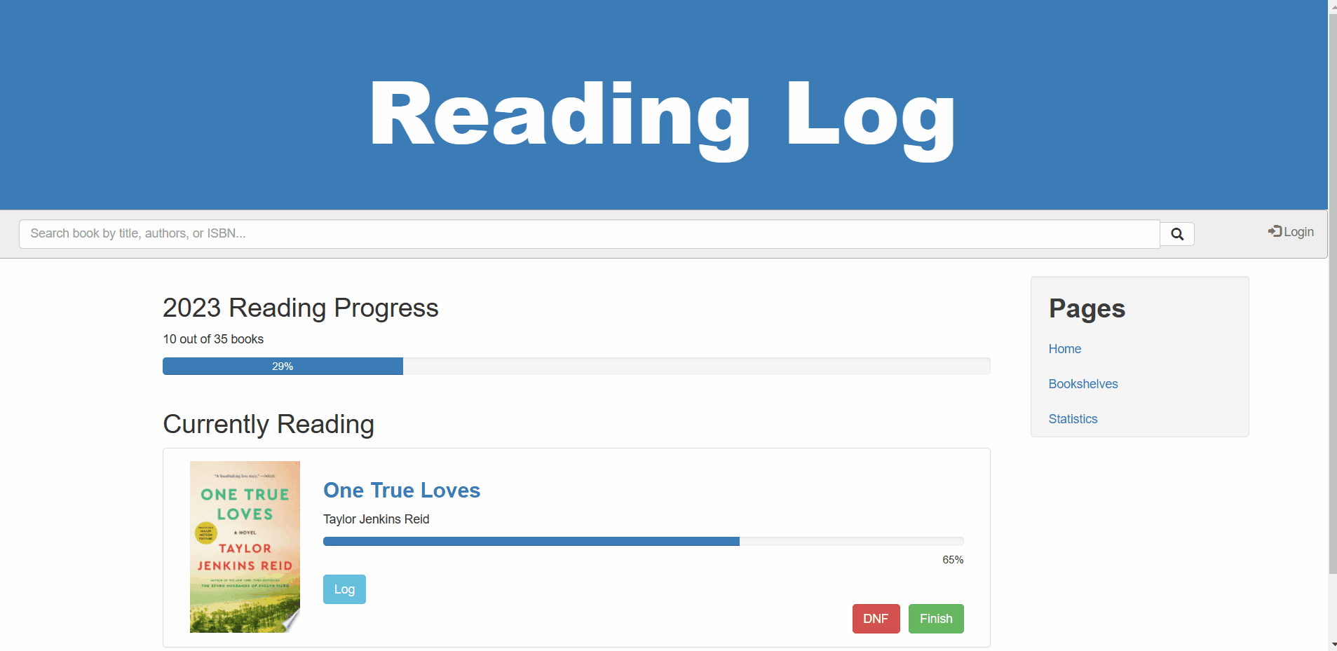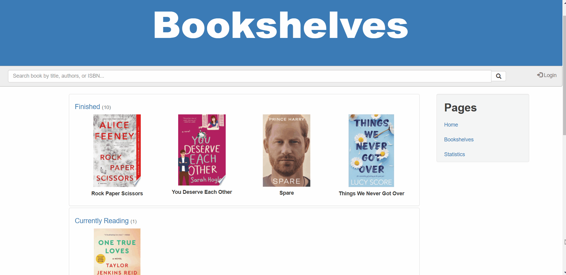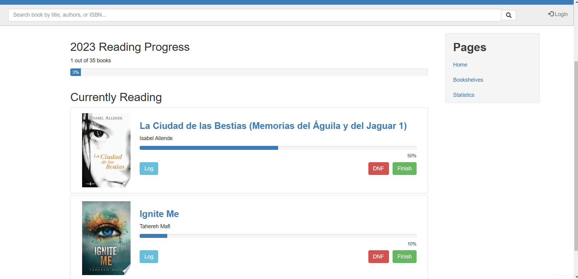 See books in different bookshelves like Currently Reading, Finished, To Read, and Did Not Finish