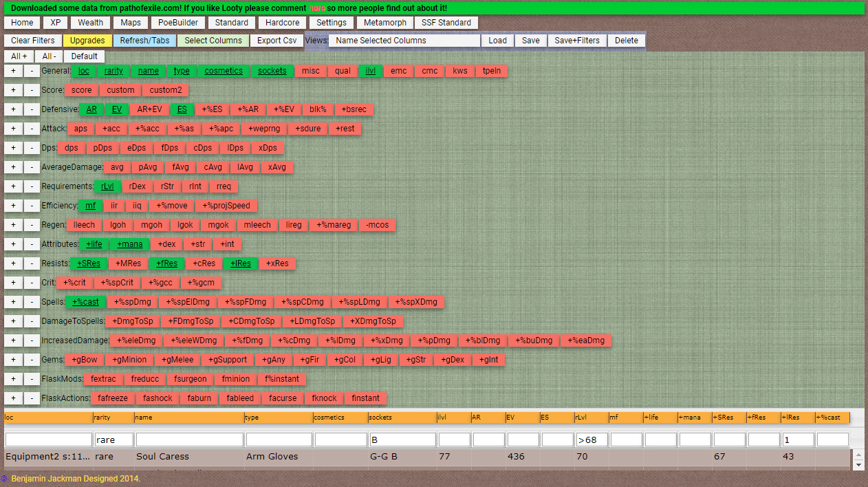 Looty! A Datagrid interface to Path of Exile Inventories.