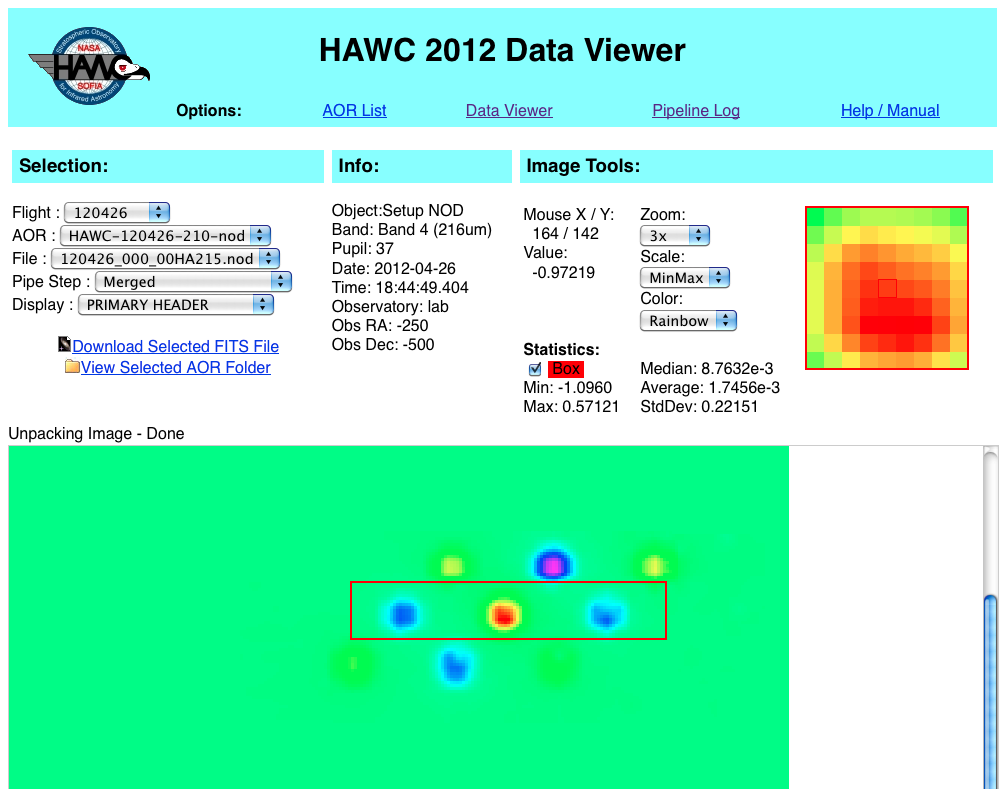 - Pipeline Log: Shows you the log for reducing the data shown in the viewer (details may differ on how the Web Fits Viewer was insatlled)