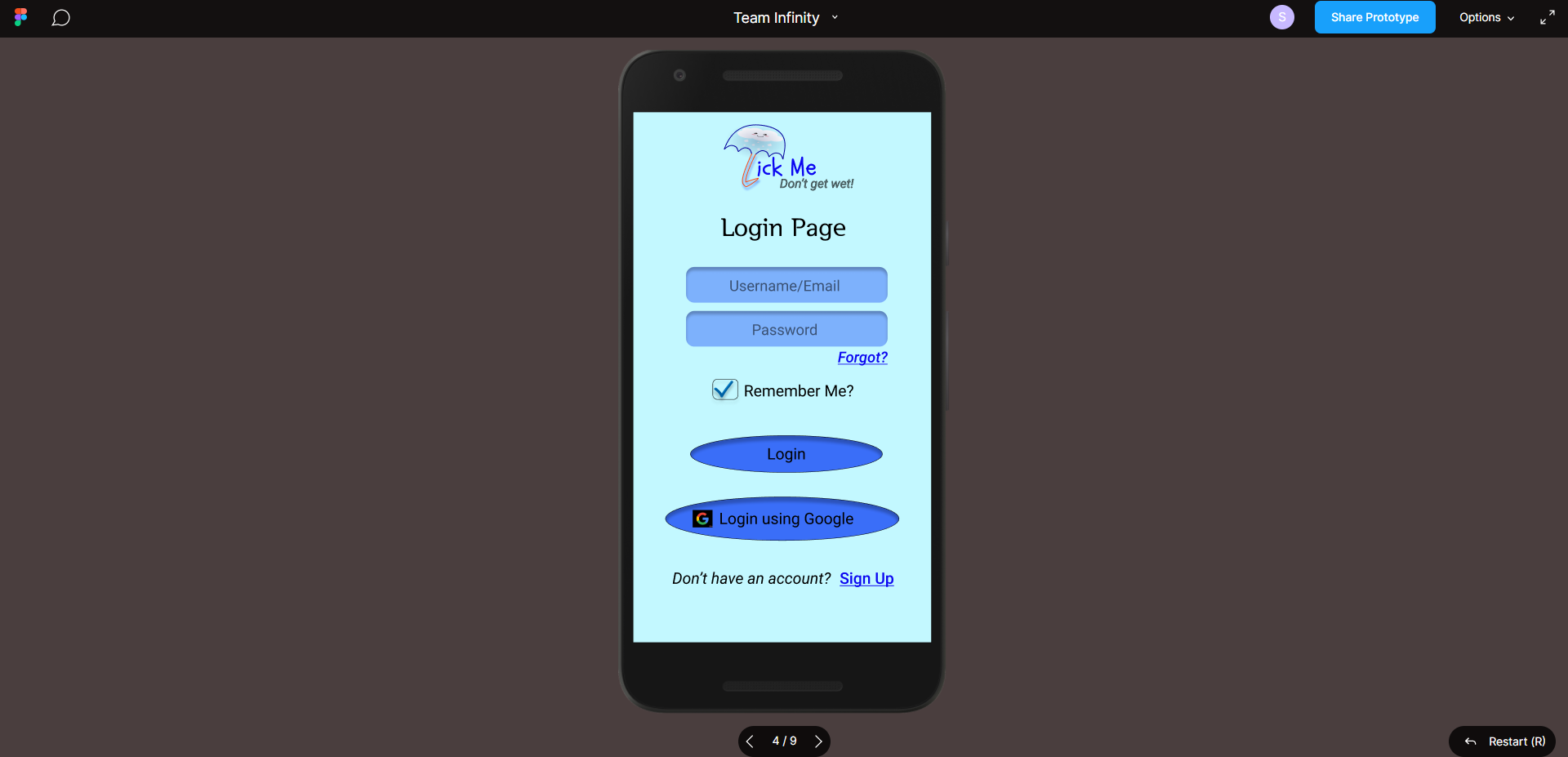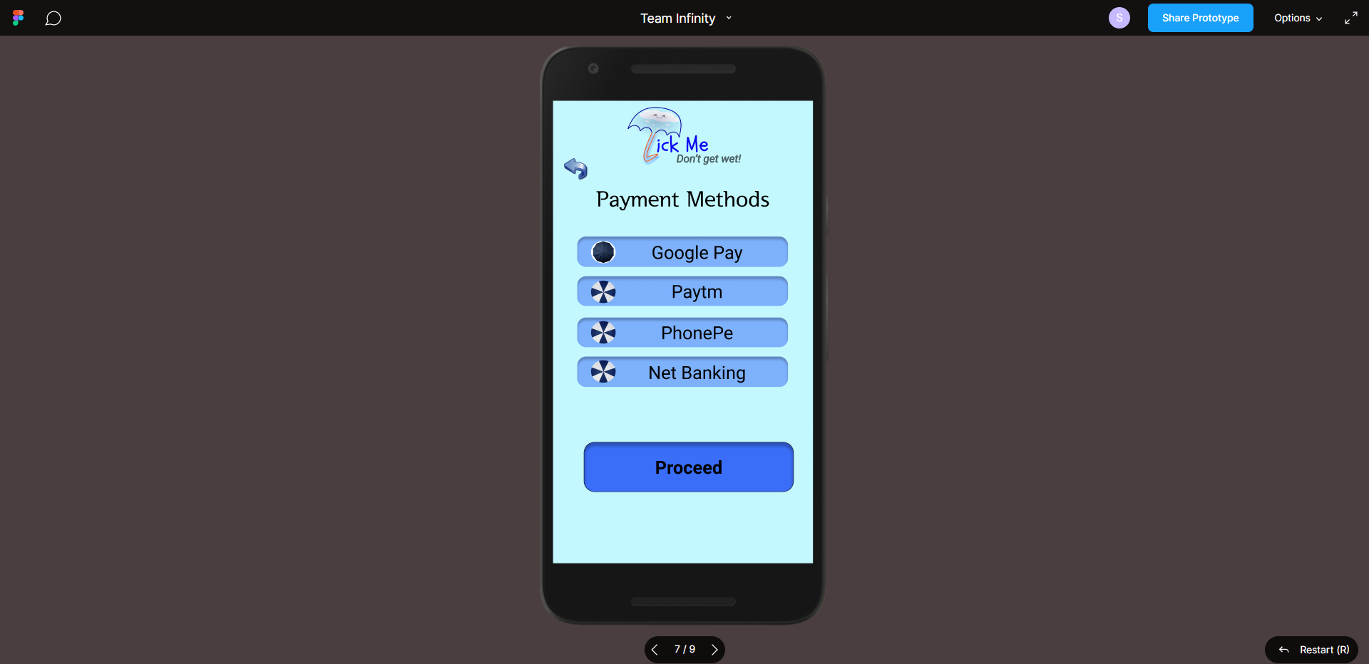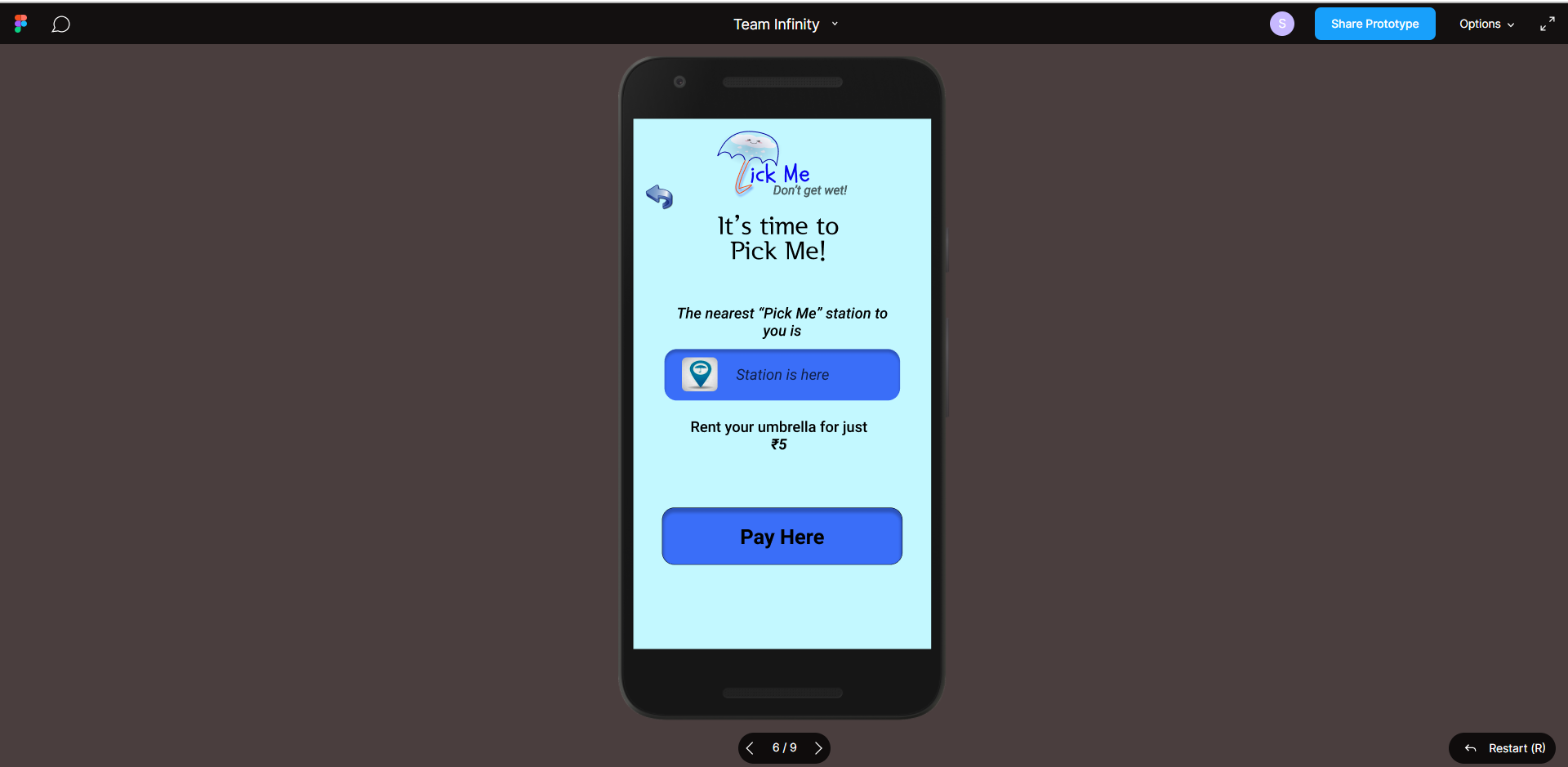 About the Project: Carrying an umbrella everywhere and every time can be quite troublesome. Sooner or later the rain will stop and you will find yourself stuck holding the wet umbrella. Here, we the team "Infinity" bring you an application named "Pick Me". The user can register through this app,pay money and get umbrellas for rent when in need.