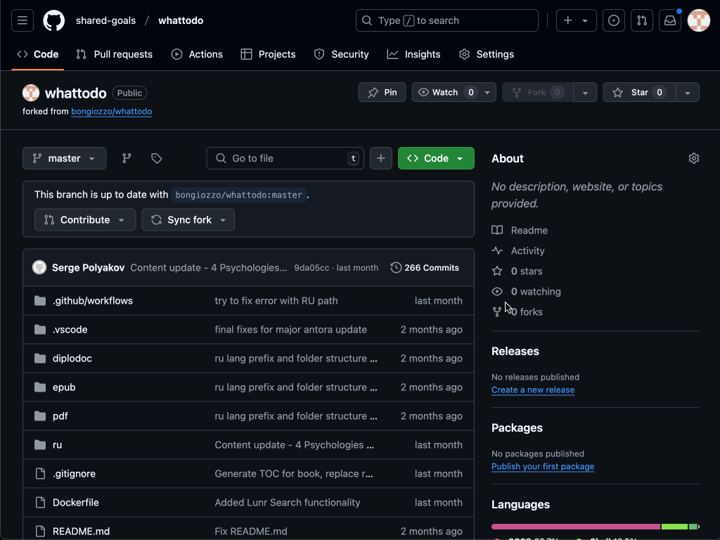 Actions эти уже настроены, работают в нашем проекте и были скопированы в Ваш при создании Fork. И так как наши проекты пока ничем не отличаются – эти действия будут работать точно также и для Вашего.