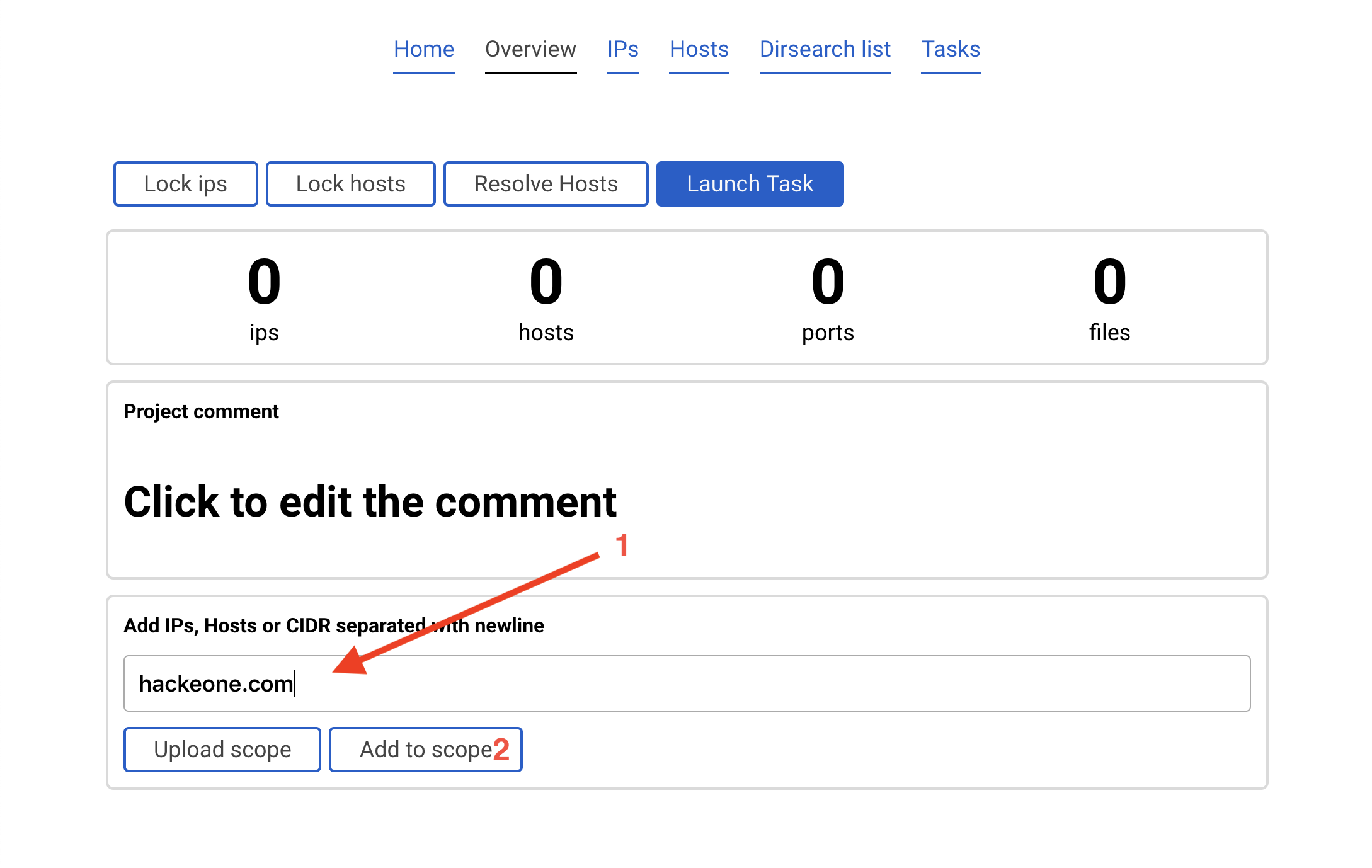 Let's say we are assessing hackerone.com and all it's subdomains. Write hackerone.com into the add scope field and press Add to scope