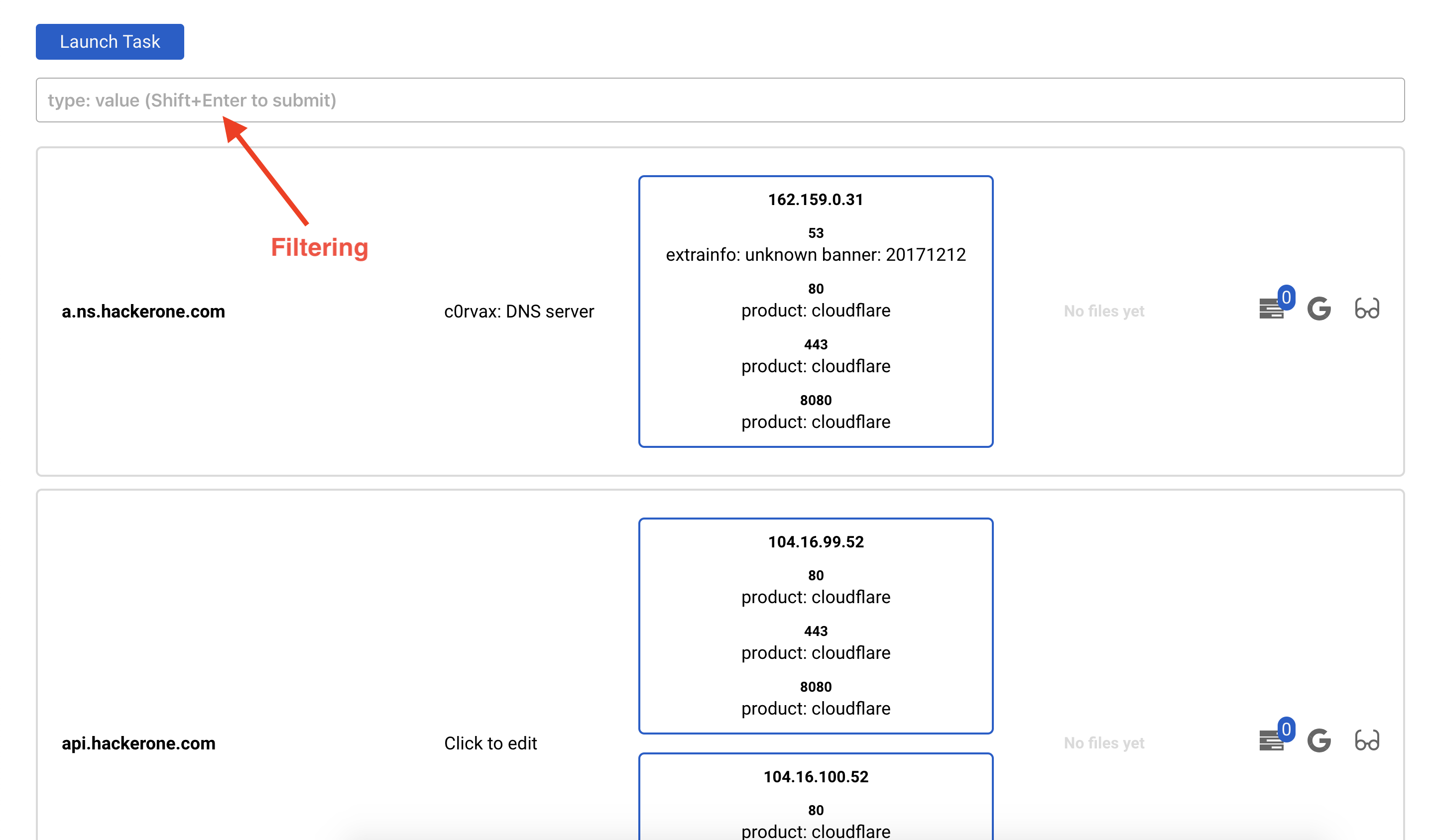 IPs and Hosts Launch task are different! The button on IPs page will start against all ips within the current project, meanwhile the button on the Hosts page will launch against hosts.