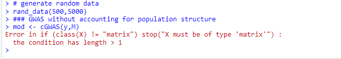 I found error is "X must be of type 'matrix' ", but the "X" parameter was not introduced in the cGWAS function.