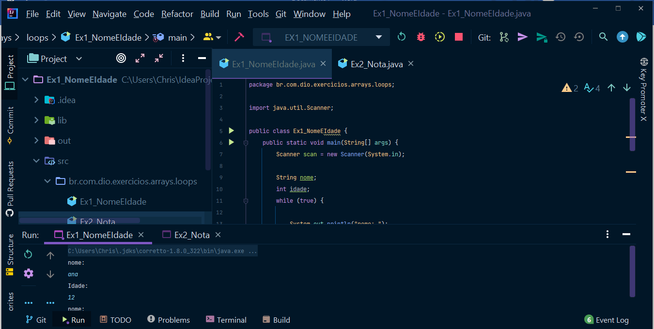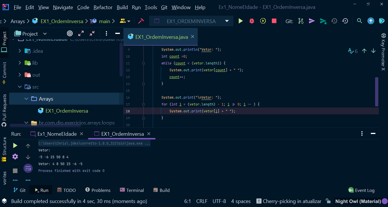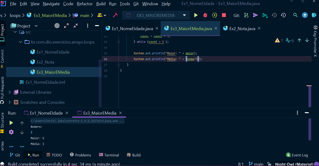 Exercício feito durante o bootcamp da Digital innovation one, onde estudamos algums tropicos como Estruturas de Repetição e Arrays em Java.