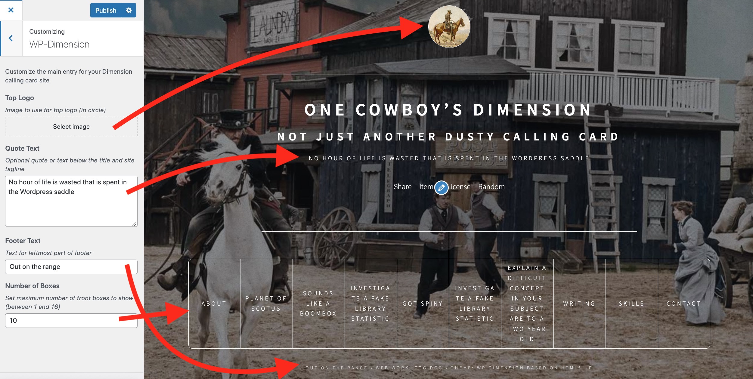 Thanks for giving WP-Dimension a try. Yes, the box number was hard wired to be 8, probably an artifact of the first versions that were less flexible with the size of text in the boxes. I just did a quick update that now has a new option in the Customizer (WP-Dimension --> Other Settings) where you can set the maximum number to be 1 to 16. It's lightly tested but seems working. Please let me know how it works (and share your site if you are okay with me adding to the examples list) |