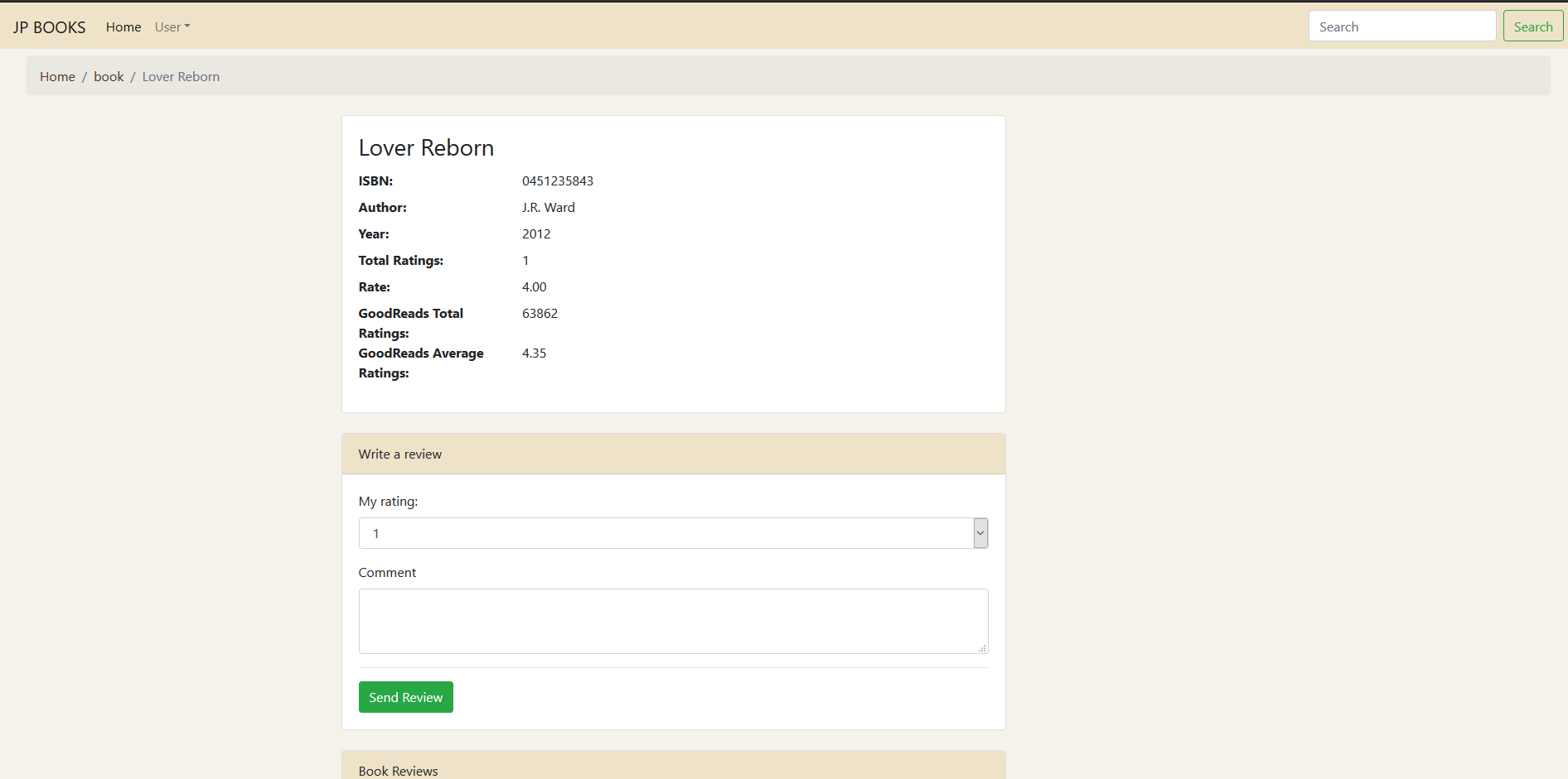 Goodreads Review Data: On your book page, you should also display (if available) the average rating and number of ratings the work has received from Goodreads.