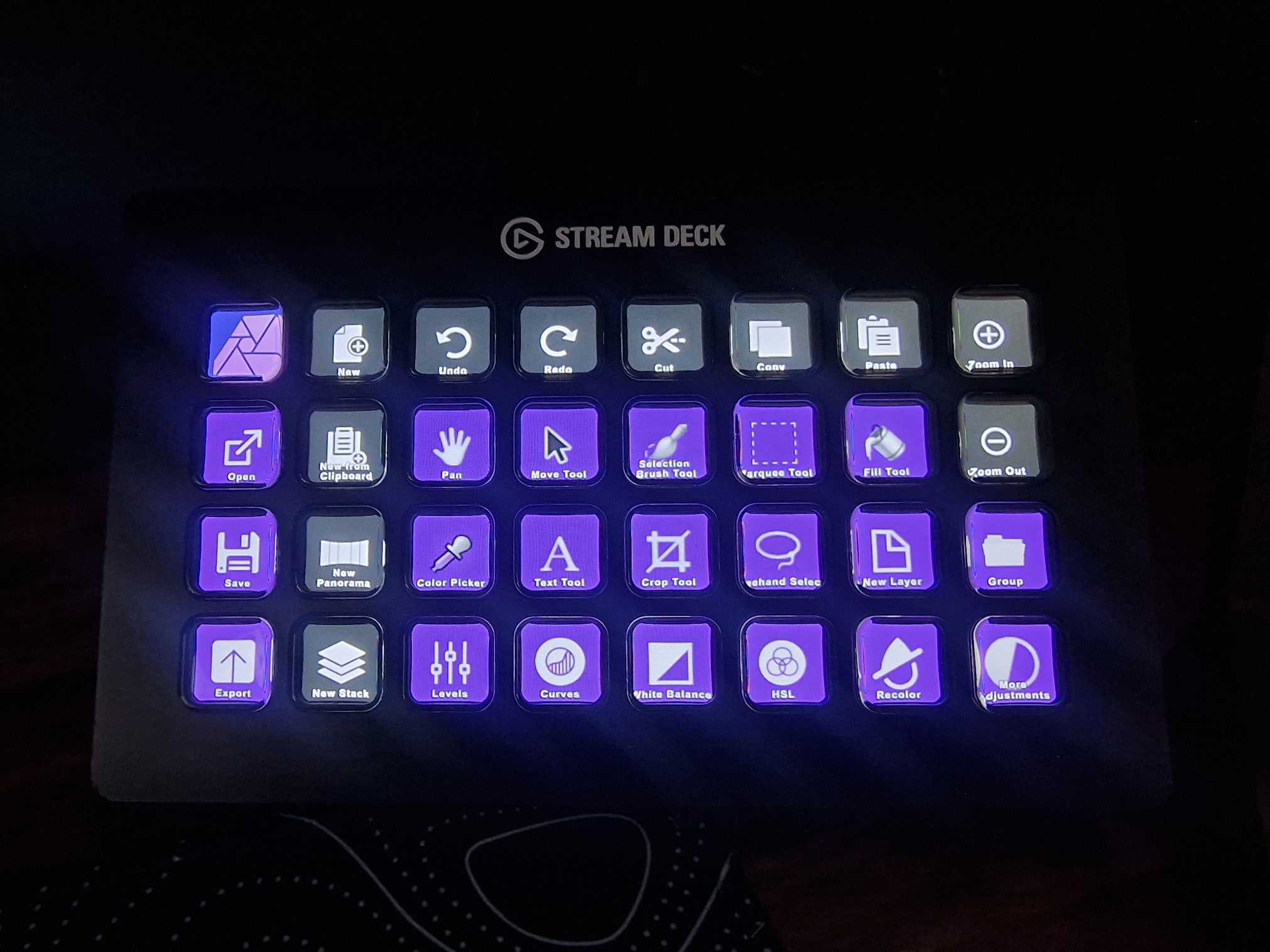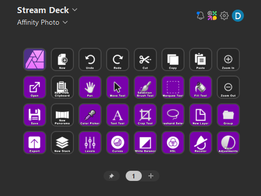 This is a streamdeck profile that I have created for Affinity Photo which includes macros for common tools & adjustments.