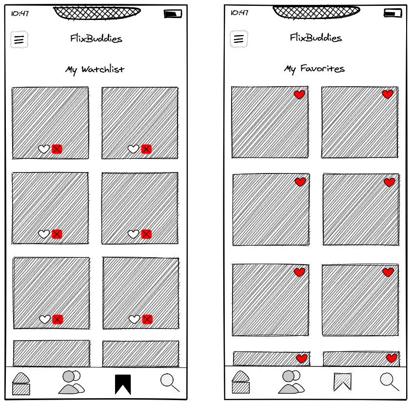 - Upon clicking the heart icon (favorite) the movie will be removed from the watchlist and stored within the favorites page.