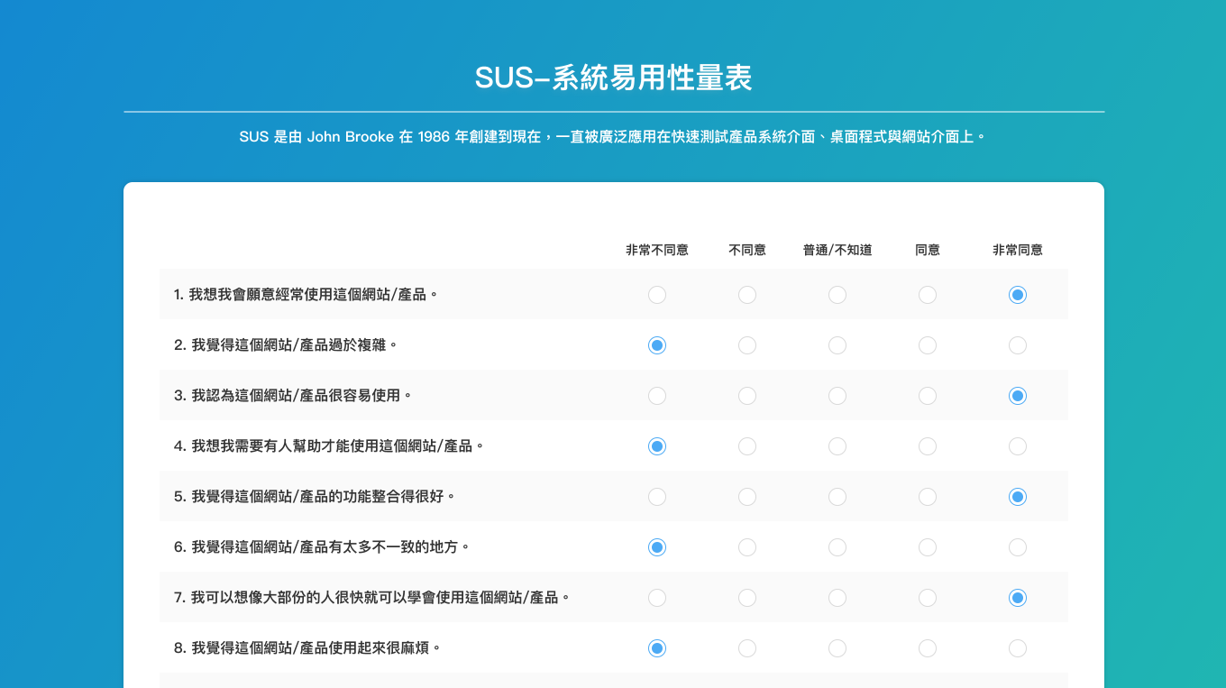 The SUS web application is a full-stack web application that allows UX designers to efficiently measure the usability of projects and services, such as hardware, software, mobile devices, websites, and applications, through the System Usability Scale (SUS).