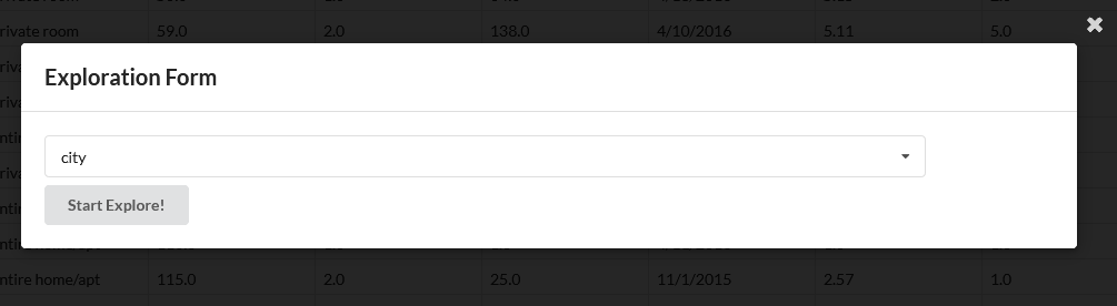 The navigation panel is hidden by default. After either importing or loading a spreadsheet, users can choose to display the navigation panel by checking Nav->Explore. The navigation panel consists of (a) a zoomable overview and (b) an aggregate column integrated with (c) a spreadsheet. A conext bar consisting of (d) navigation history displaying locations visited so far using the overview, and (e) breadcrumb showing the current navigation path. (f) User’s current focus in the spreadsheet is highlighted on the overview. (g) Columns corresponding to the navigation attribute (city) and aggregate column (availability) are highlighted on the spreadsheet.