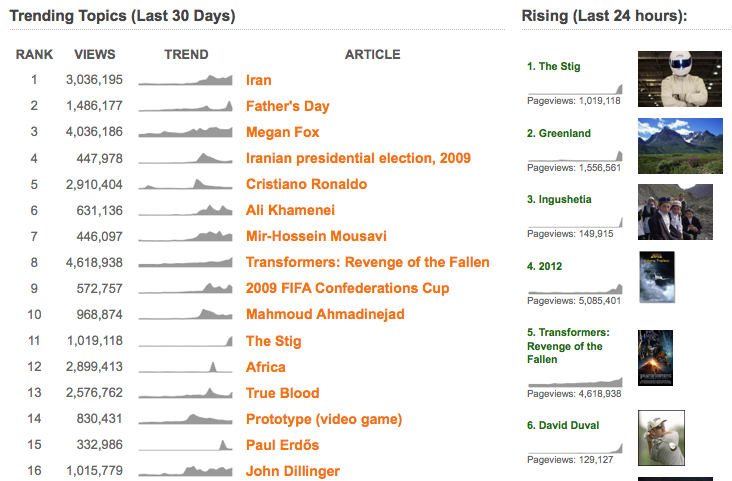 - Ranked list of the most significant trends over the last 30 days along with total pageviews