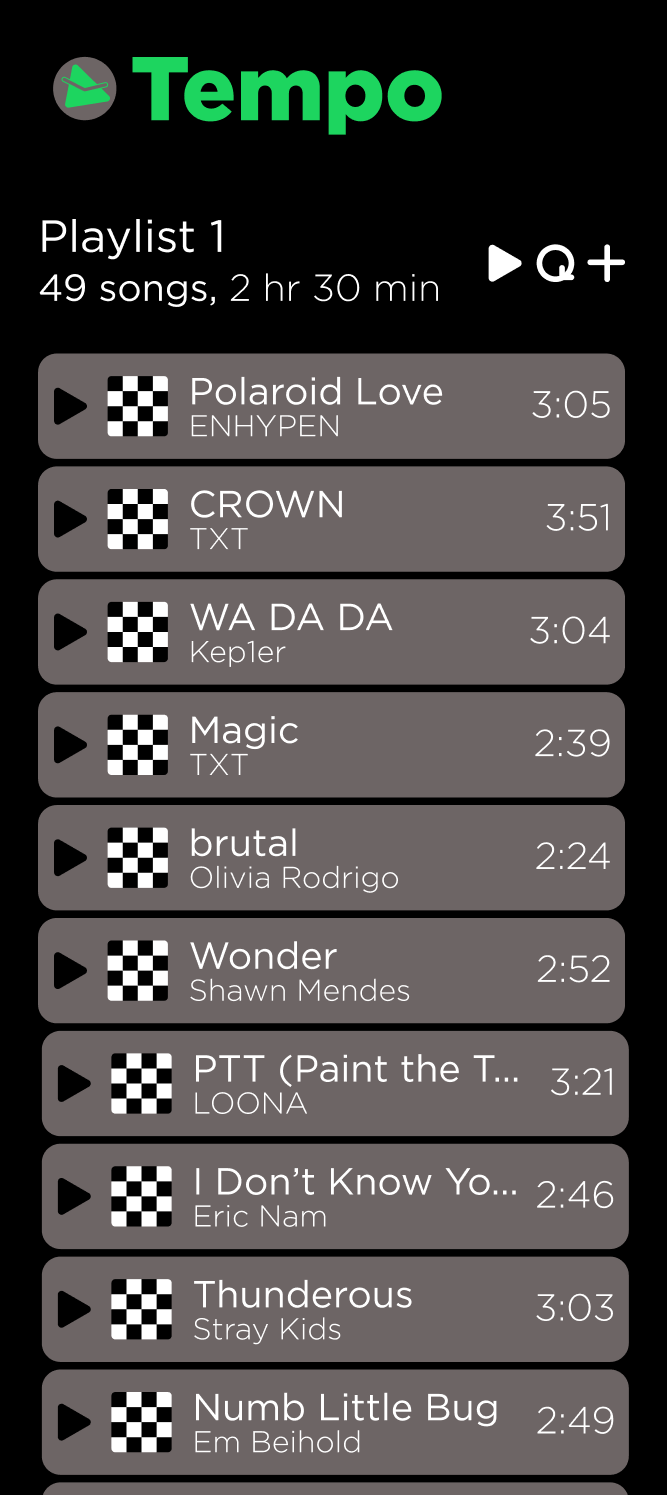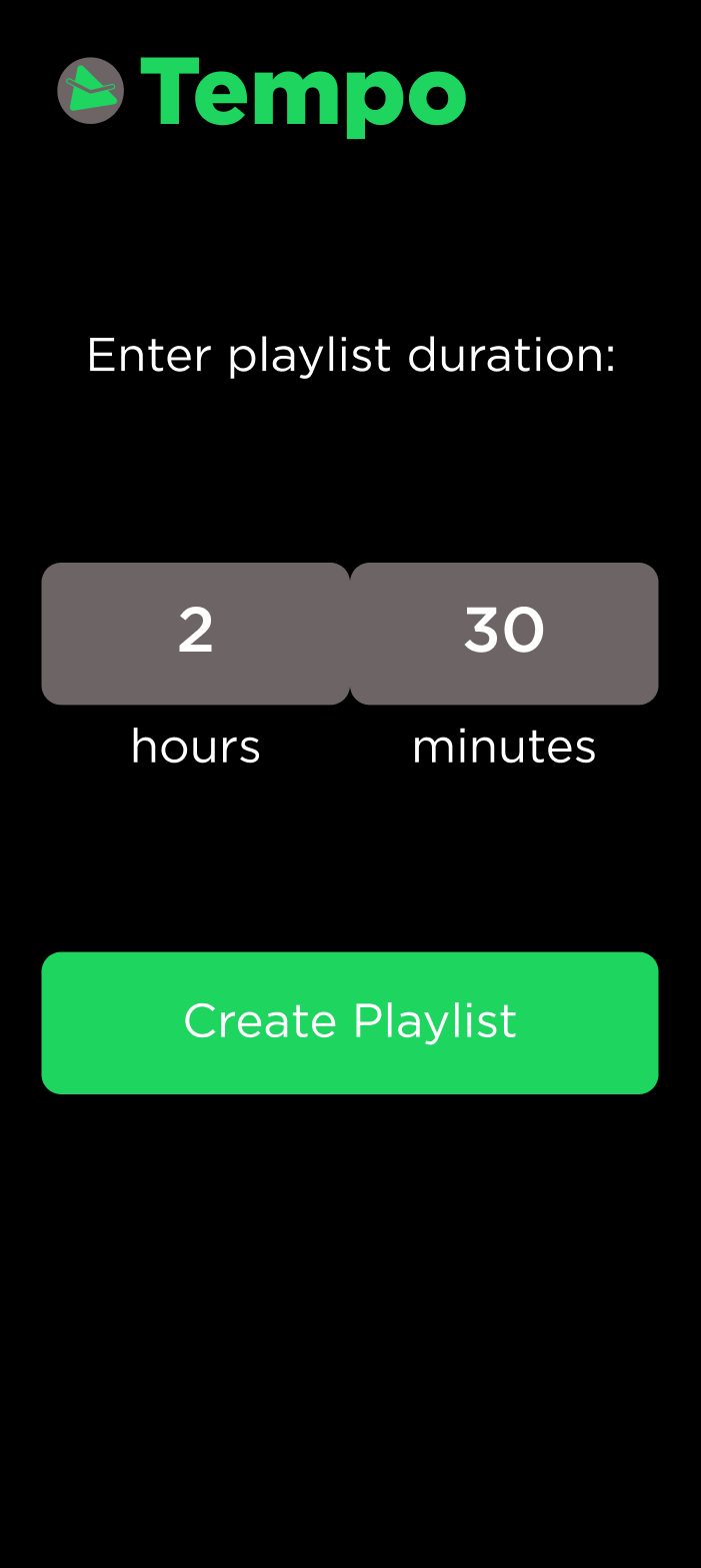A music app that creates playlists based on song durations to match the duration of a user's task, as inputted in the app.