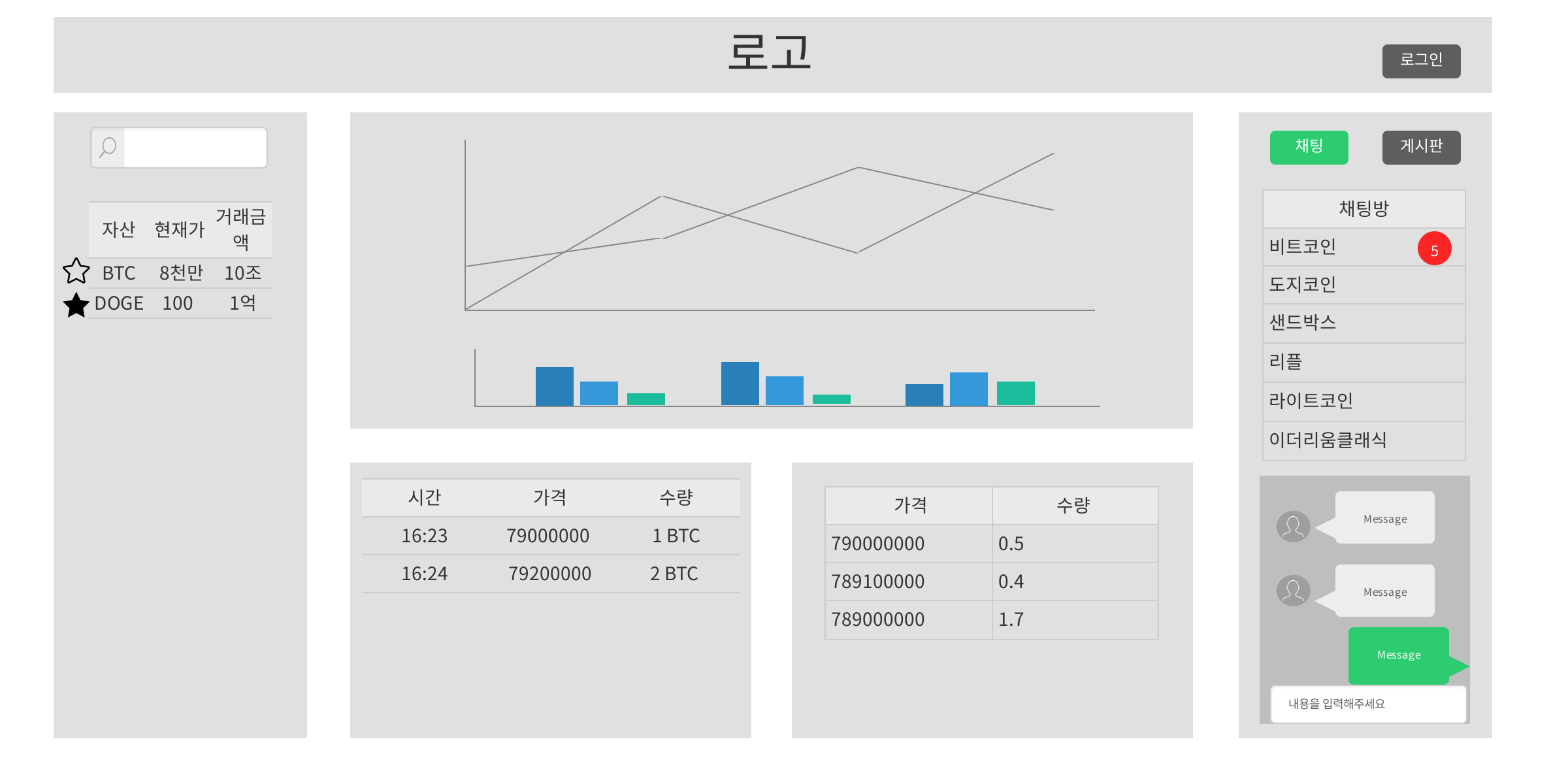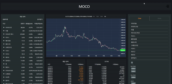 - 현재가를 기준으로 실시간 코인 가격 (그래프) 표시