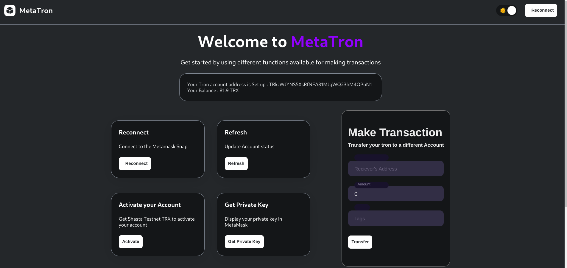 Snap to enable MetaMask users interaction with the Tron Blockchain.