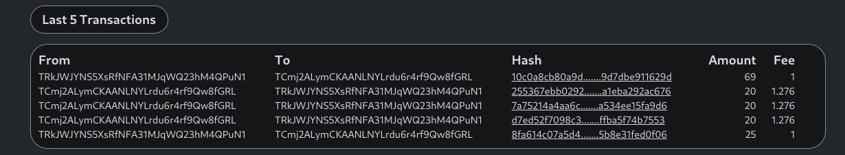 Note: All transactions are carried out on the shasta testnet provided by Tron.