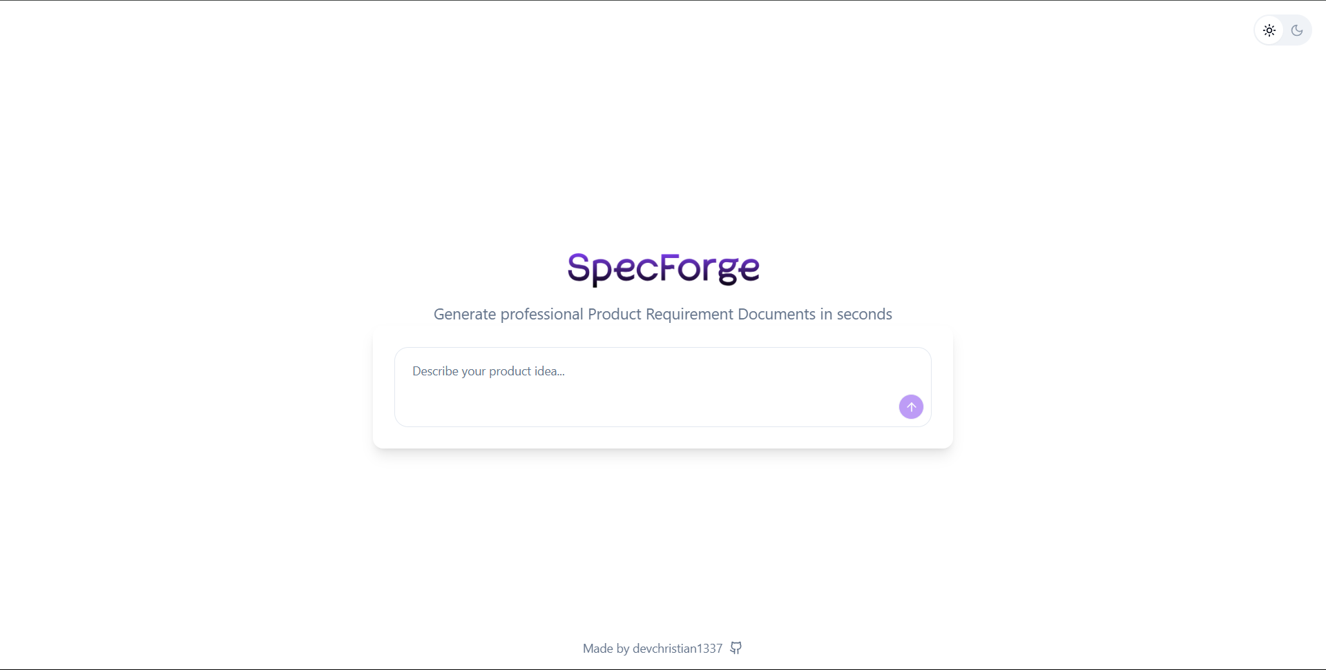 SpecForge is a modern web application that helps you generate professional Product Requirement Documents (PRDs) in seconds using AI technology. Built with React, TypeScript, and powered by Google's Gemini AI, it provides a seamless and efficient way to create detailed product specifications.
