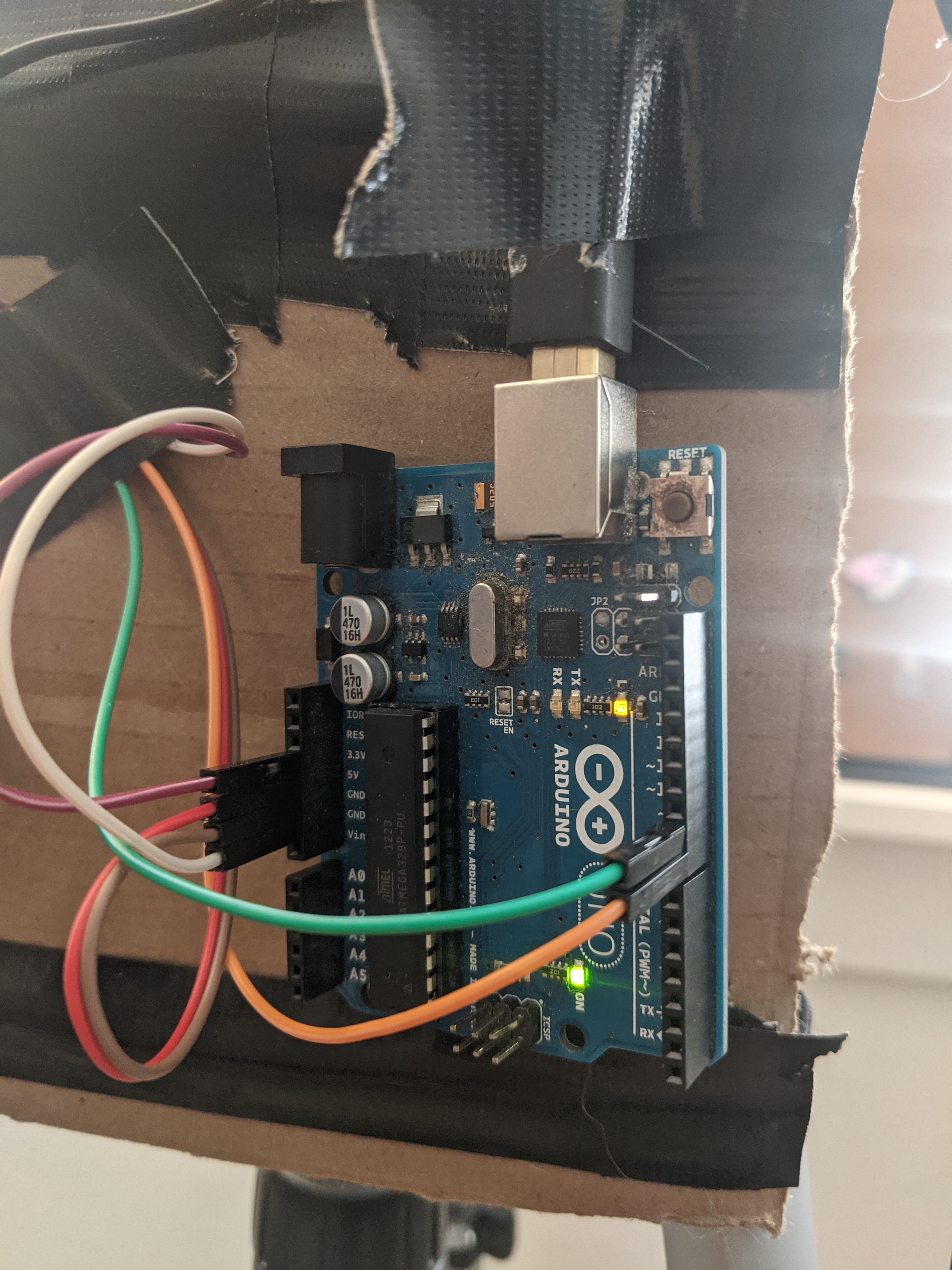 - connect servos and laser to power supply. In my case I wired the laser to a 5v DC power supply I had lying around and connected the servos to the Arduino's 5v and 3v out pins.