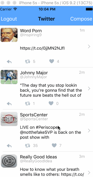 - User can load more tweets once they reach the bottom of the feed using infinite loading similar to the actual Twitter client.