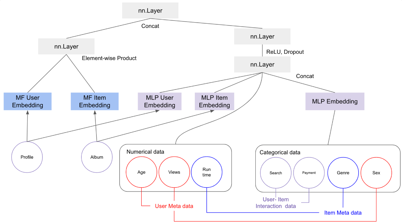 - 모델 처리 방안: NeuMF에 주요 feature 추가