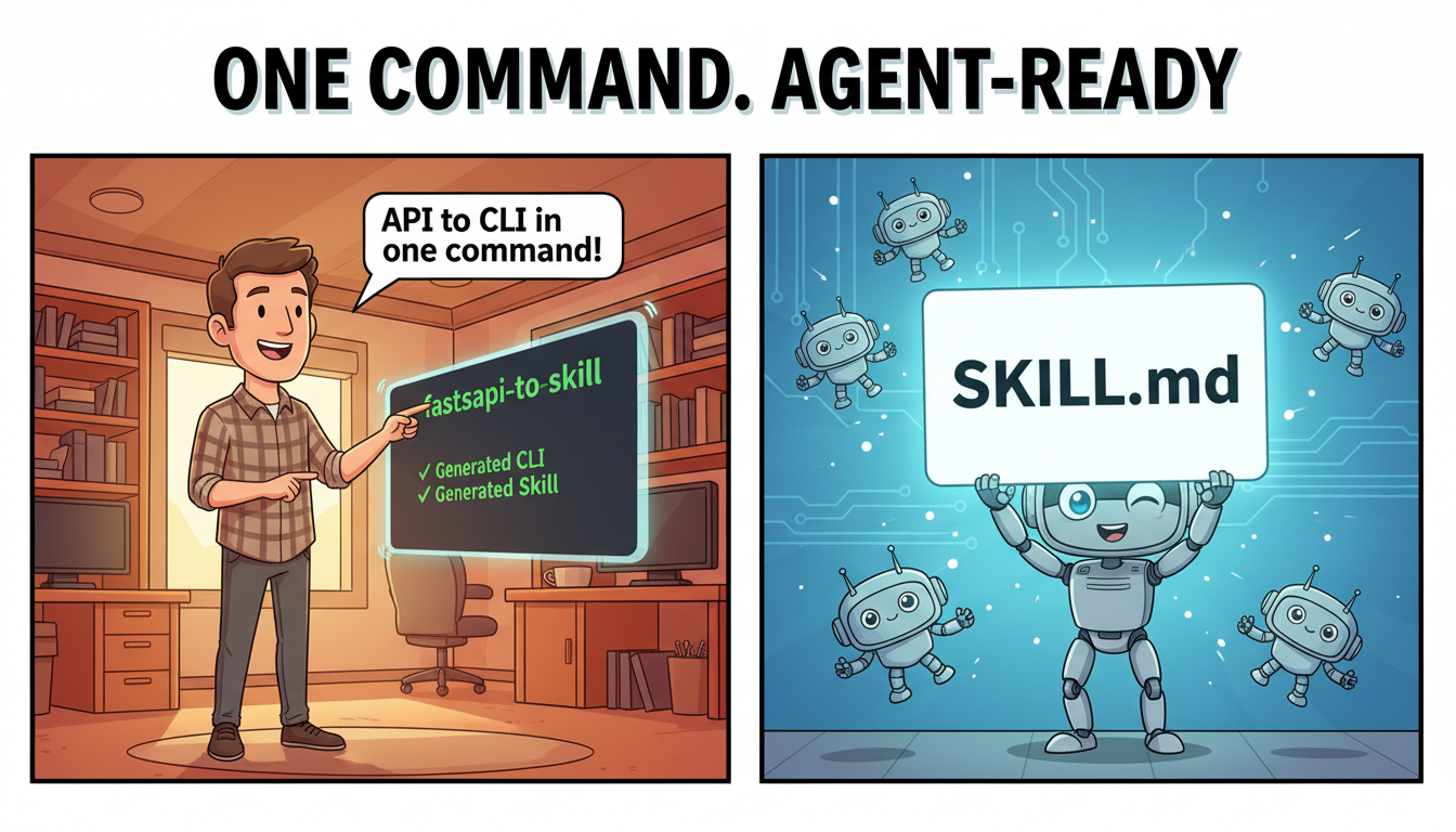 fastapi-to-skill generate main:app -o ./skills/myapi/A year ago, APIs served frontends. Developers read docs, learned the UI, wrote integration code.