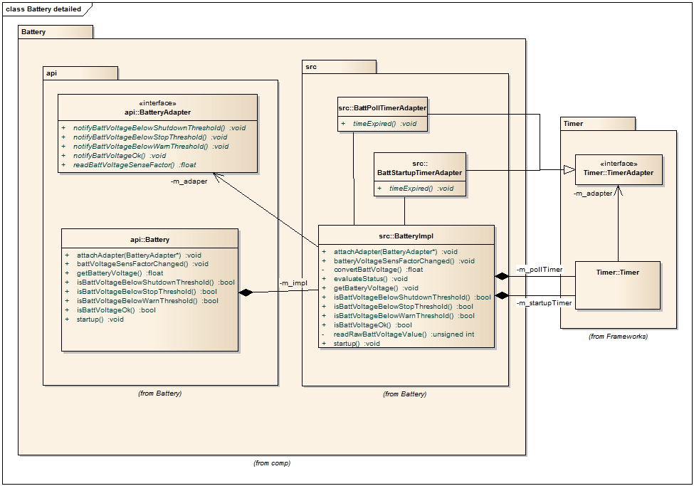 The following class diagram shows the Battery component integration into Lintilla.Embedded application.