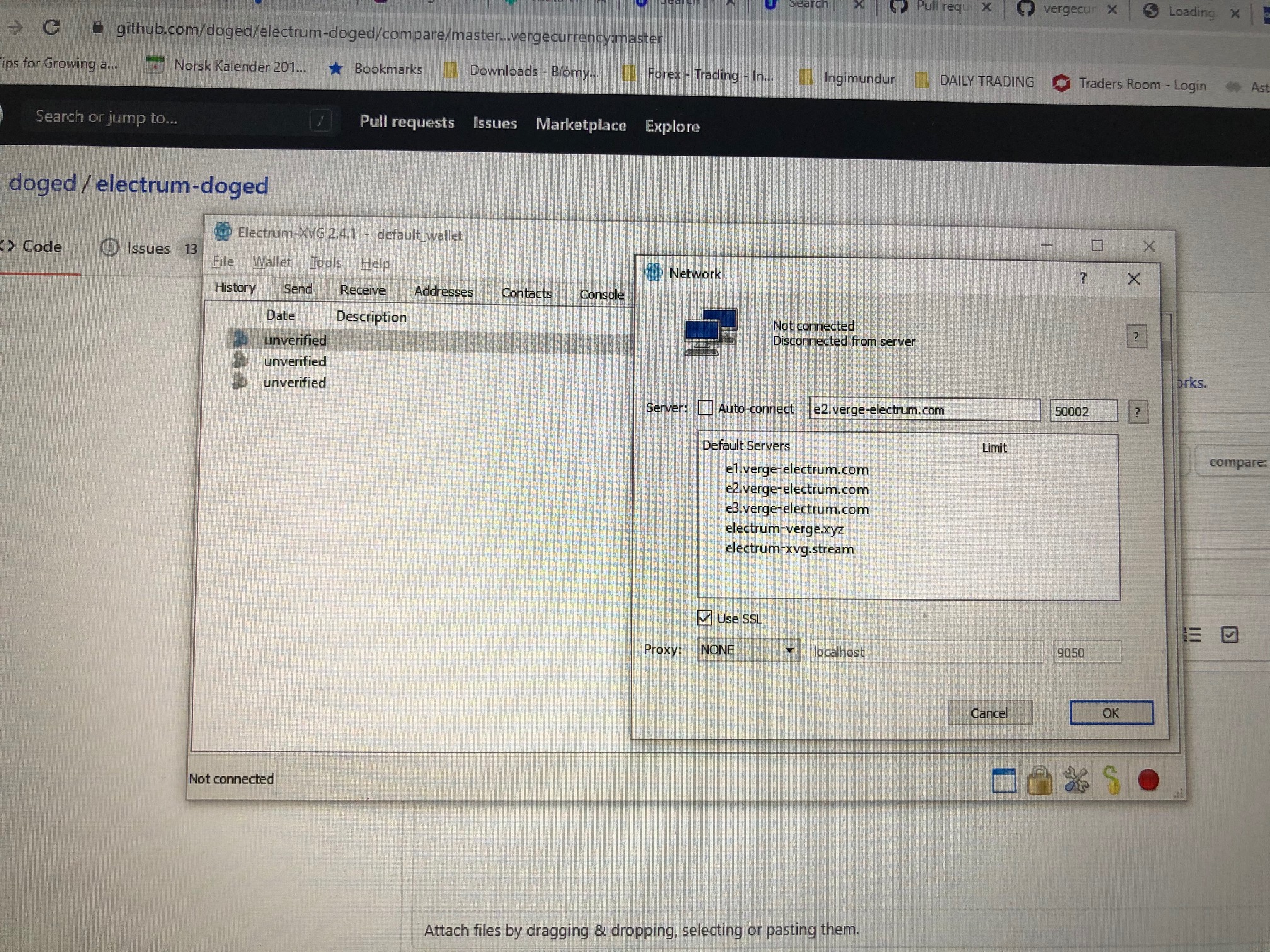 Electrum - XVG 2.4.1 - Not Connected, Disconnected from server?#28