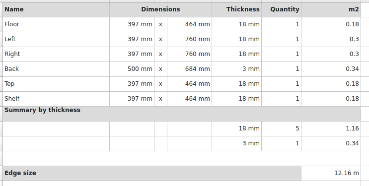 - Export cut-list to format csv, json, html, markdown via sheet2export.