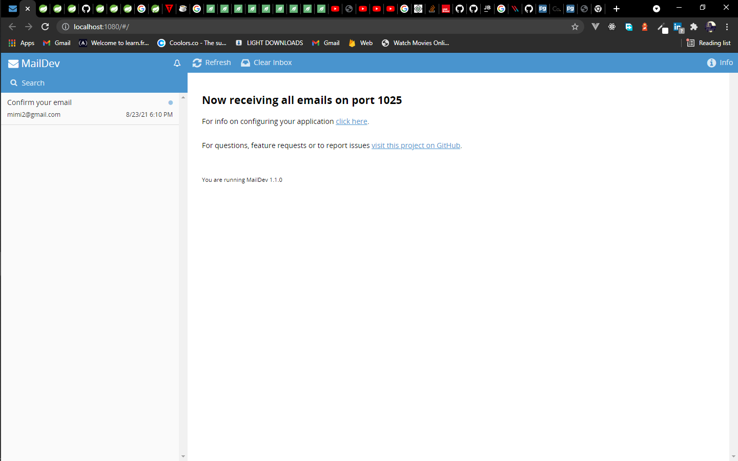 login_backend Token generated with the user credentials Mail server Mail recieved in the mail server with email