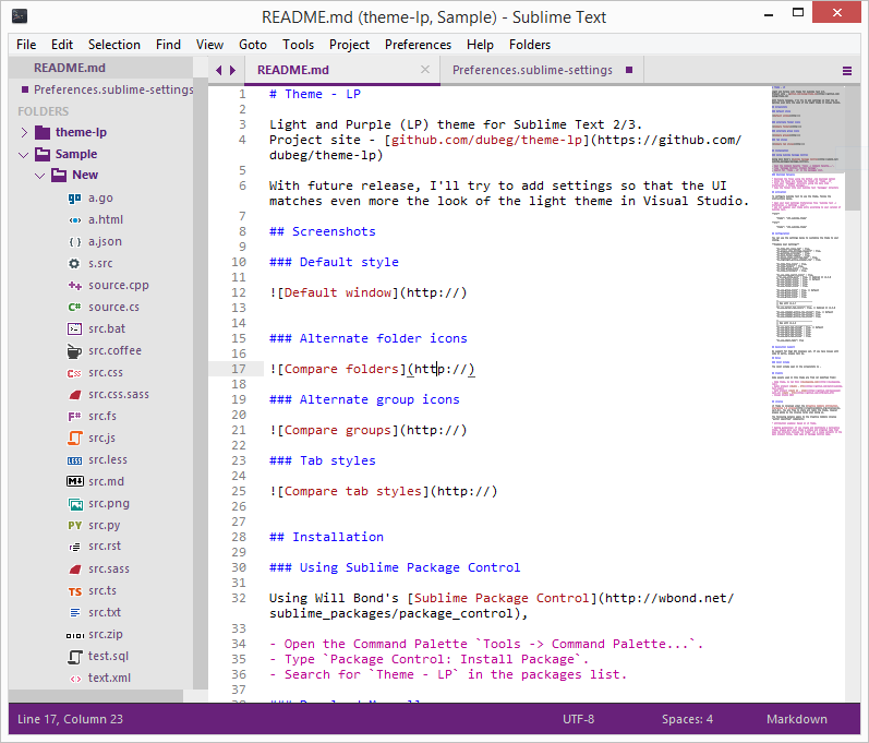 Light and Purple (LP) theme for Sublime Text 2/3. Project site - github.com/dubeg/theme-lp
