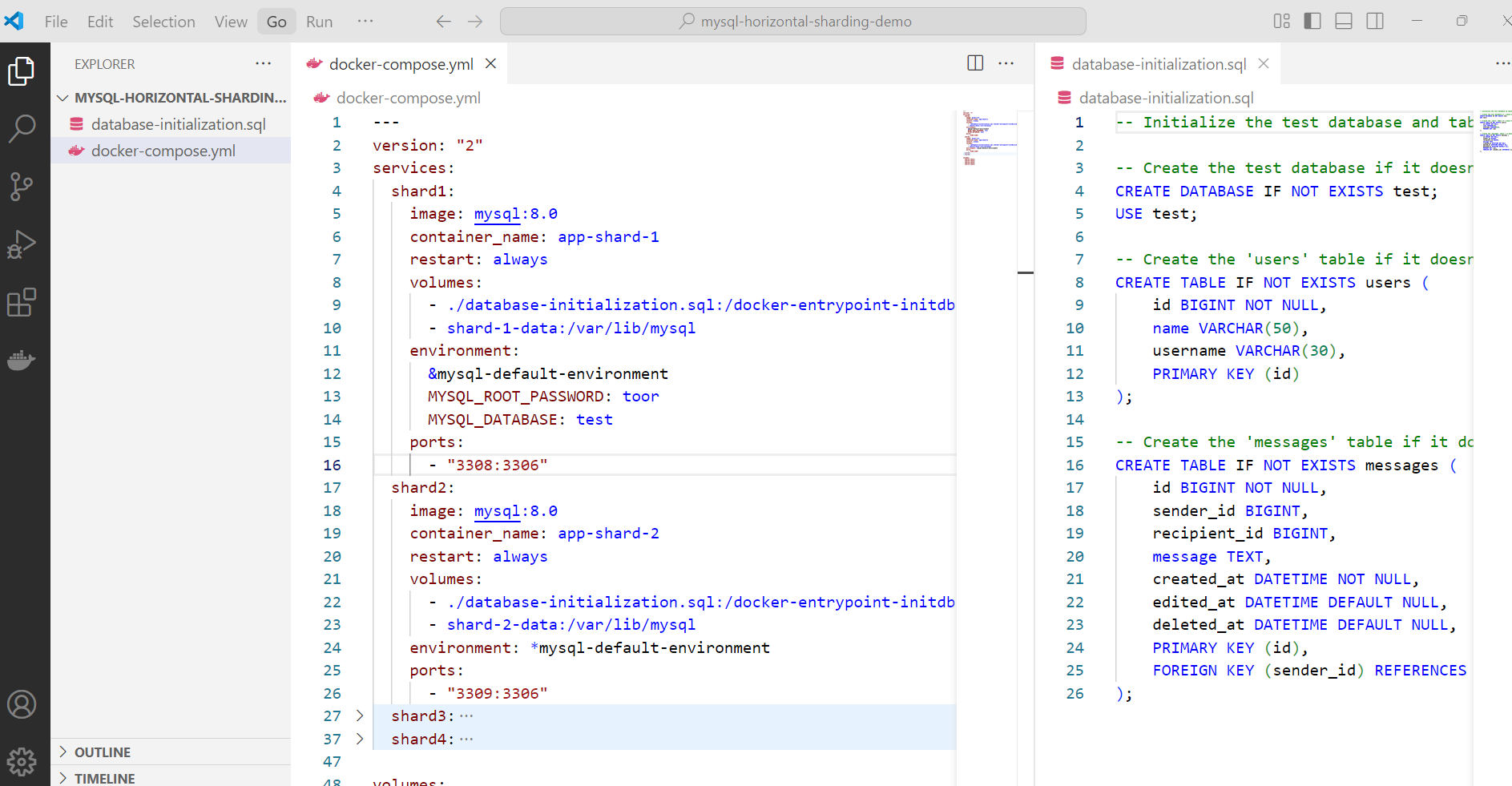 In this demo we will shard MySQL test database having two tables users and messages.