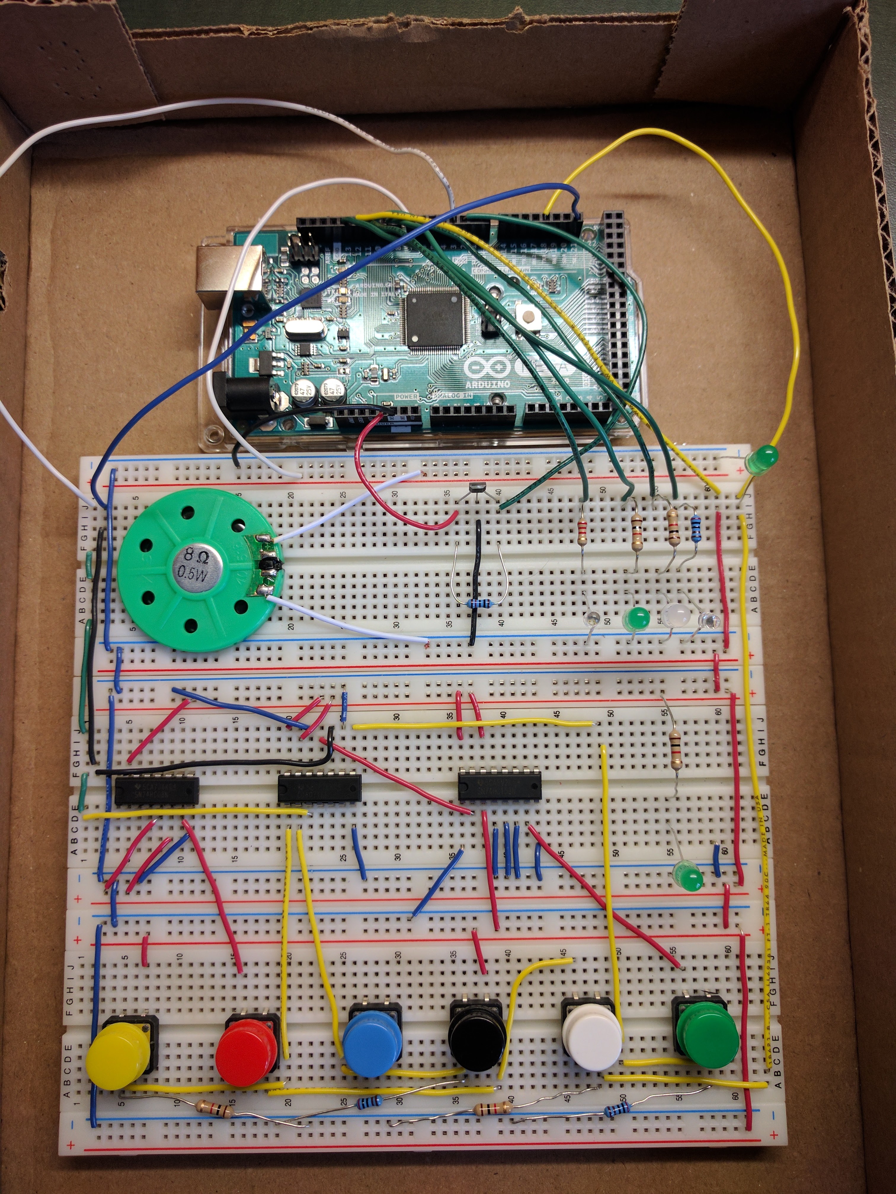 - When the correct combinations of buttons are pressed, the user will be greeted with multiple flashing RGB LED’s and a nice noise on the mini speaker