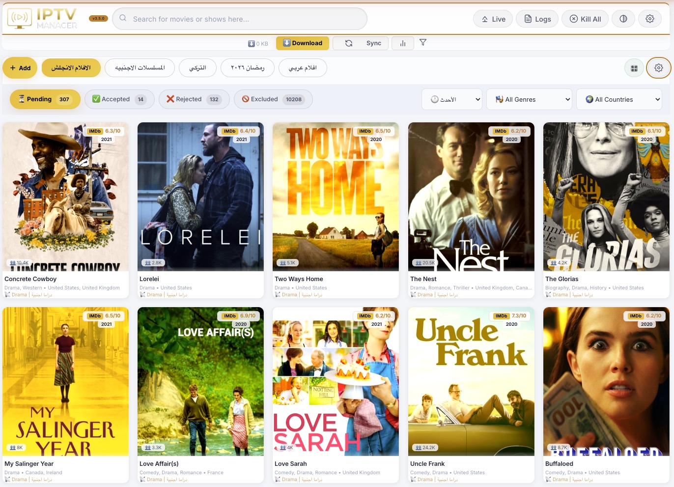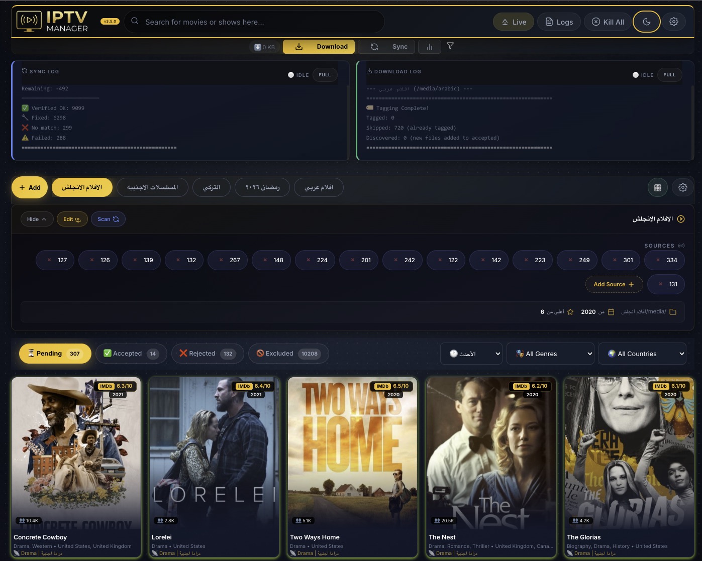 IPTV Manager يحول كتالوج IPTV الضخم والفوضوي إلى مكتبة منظمة قابلة للتحكم. هو ليس برنامج تحميل فقط؛ هو نظام قرار كامل: يجلب الكتالوج، يثري العناوين بالميتاداتا، يطبق قواعد عامة ولكل قسم، يعرض كل شيء في لوحة مراجعة، يحمل المقبول، يشغل محليًا، يتابع Plex، يكتشف الملفات الموجودة، يفحص التلف، يحافظ على مسار Trash/Restore، ويراقب الأجهزة والتحديثات.