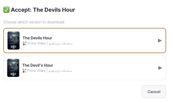 يكتشف الجديد من المزود، يفلتره، يخليك تقبل أو ترفض، يحمل تلقائيًا، يتابع المشاهدة، ويترك كل خطوة قابلة للمراجعة والاسترجاع.