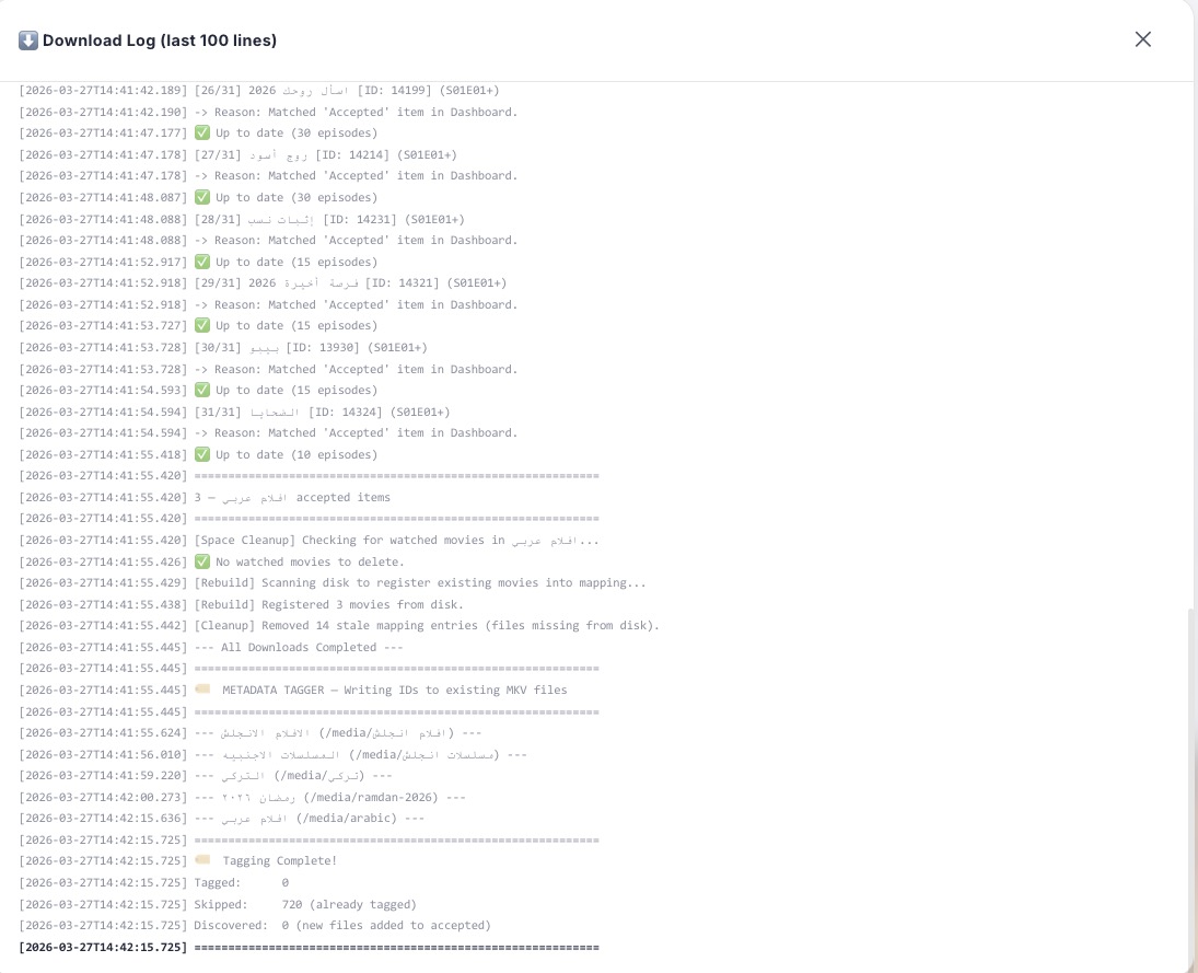- Future date refresh supports Accepted, VOD, Watchlist, and Plex reclaim safety.