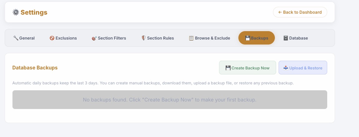 | Backups | Create, upload, restore, download, delete, and review backup history | إنشاء، رفع، استرجاع، تحميل، حذف، ومراجعة النسخ الاحتياطية |