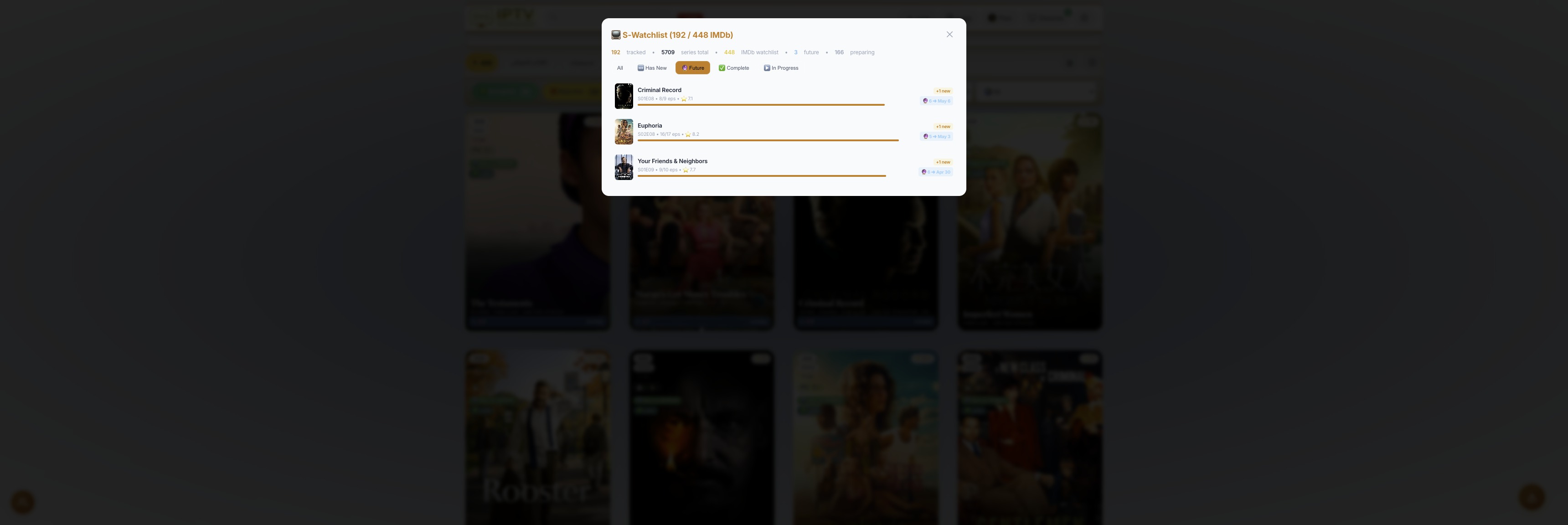 لوحة S-Watchlist تتابع تقدم المسلسلات وتفلتر الأعمال التي لها حلقات قادمة.