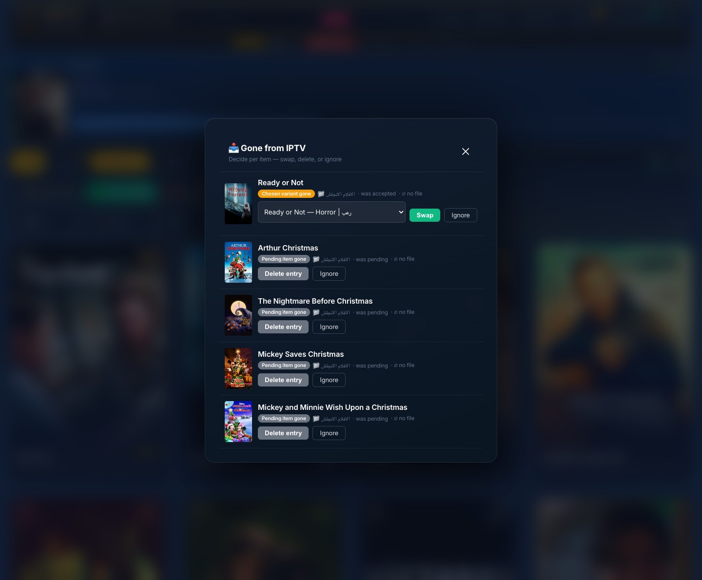 Most IPTV subscriptions expose huge catalogs but weak ownership: no clean resume, no reliable thumbnails, no structured decisions, limited watch history, repeated duplicates, unclear source quality, and high bandwidth waste. IPTV Manager fixes that by making the workflow explicit: