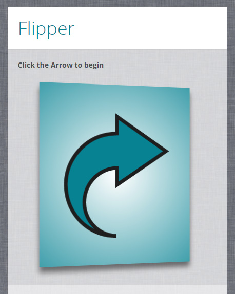 A Flipper displays lists of items one at a time. When the learner clicks on the component it flips to the next item. The component completes when the last item is displayed but the learner can continue to interact with the component as it loops back to the beginning.